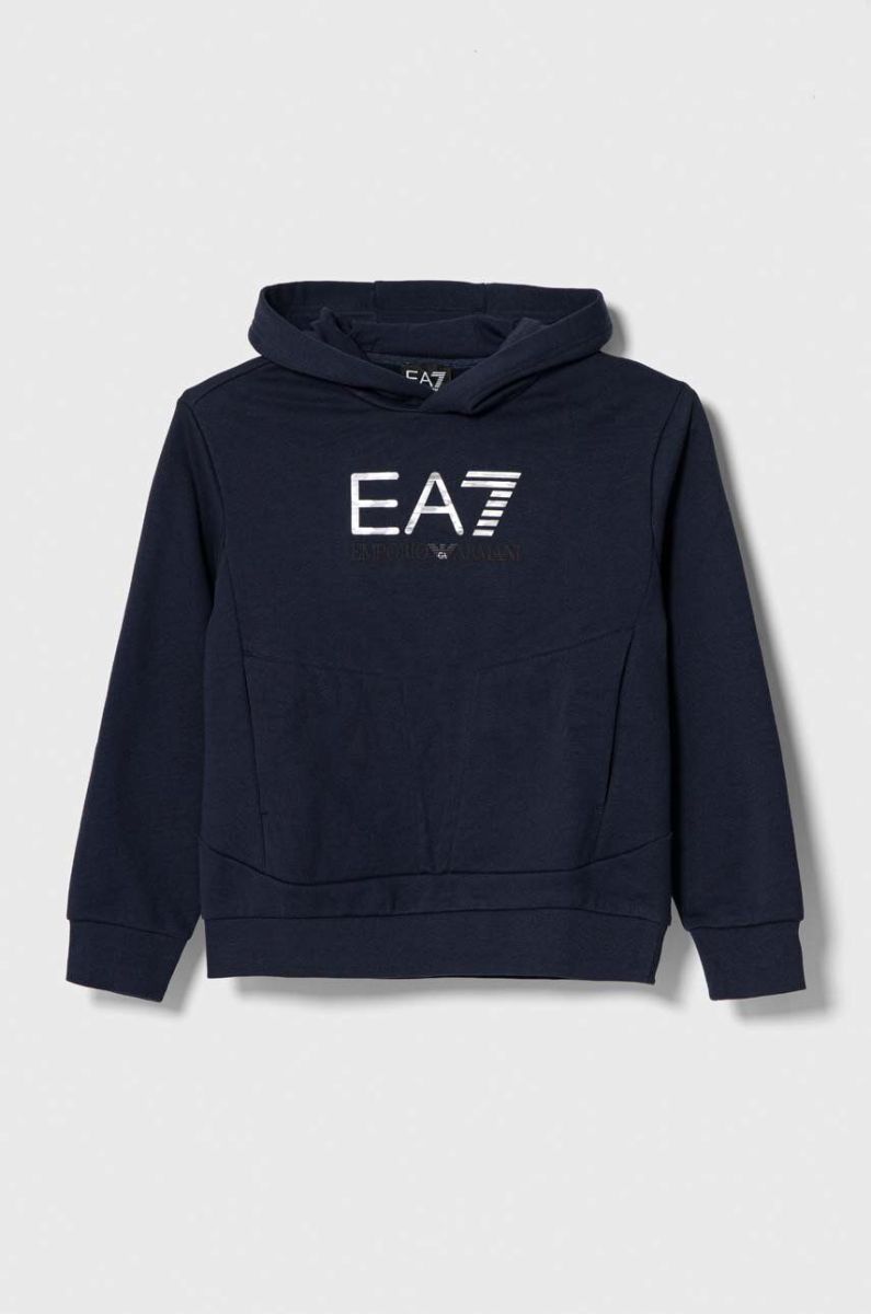 Дитяча кофта EA7 Emporio Armani колір синій з капюшоном з принтом (3380992)