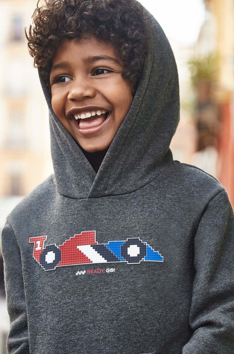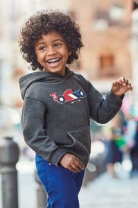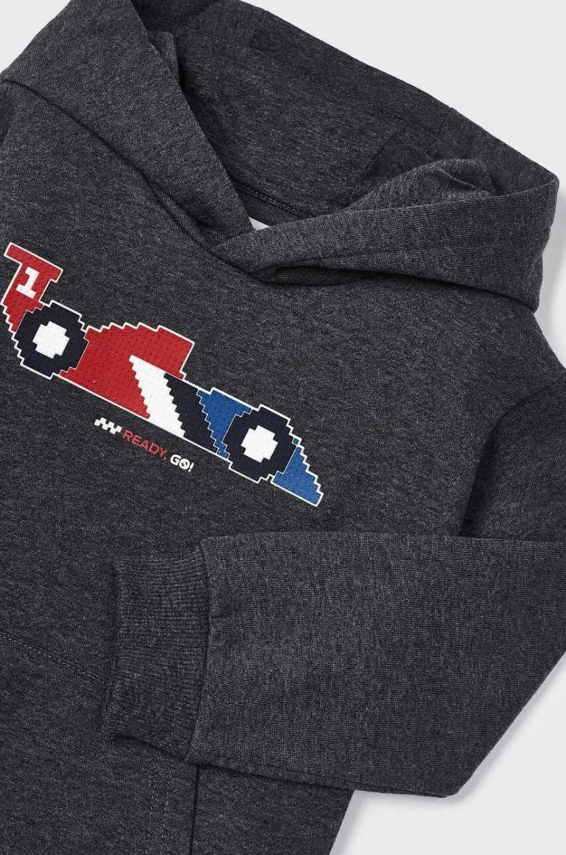 Дитяча кофта Mayoral колір сірий з капюшоном з принтом (3410715)