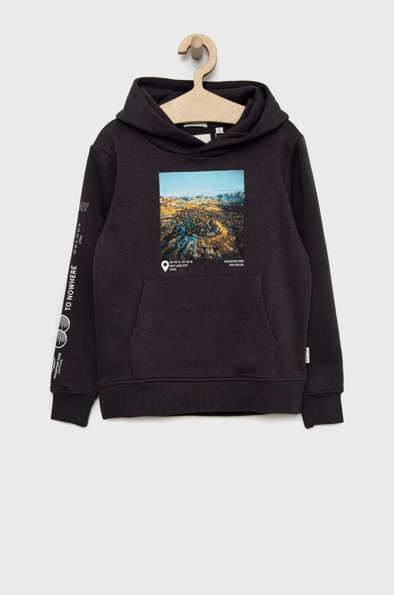 Дитяча кофта Tom Tailor колір синій з капюшоном з принтом