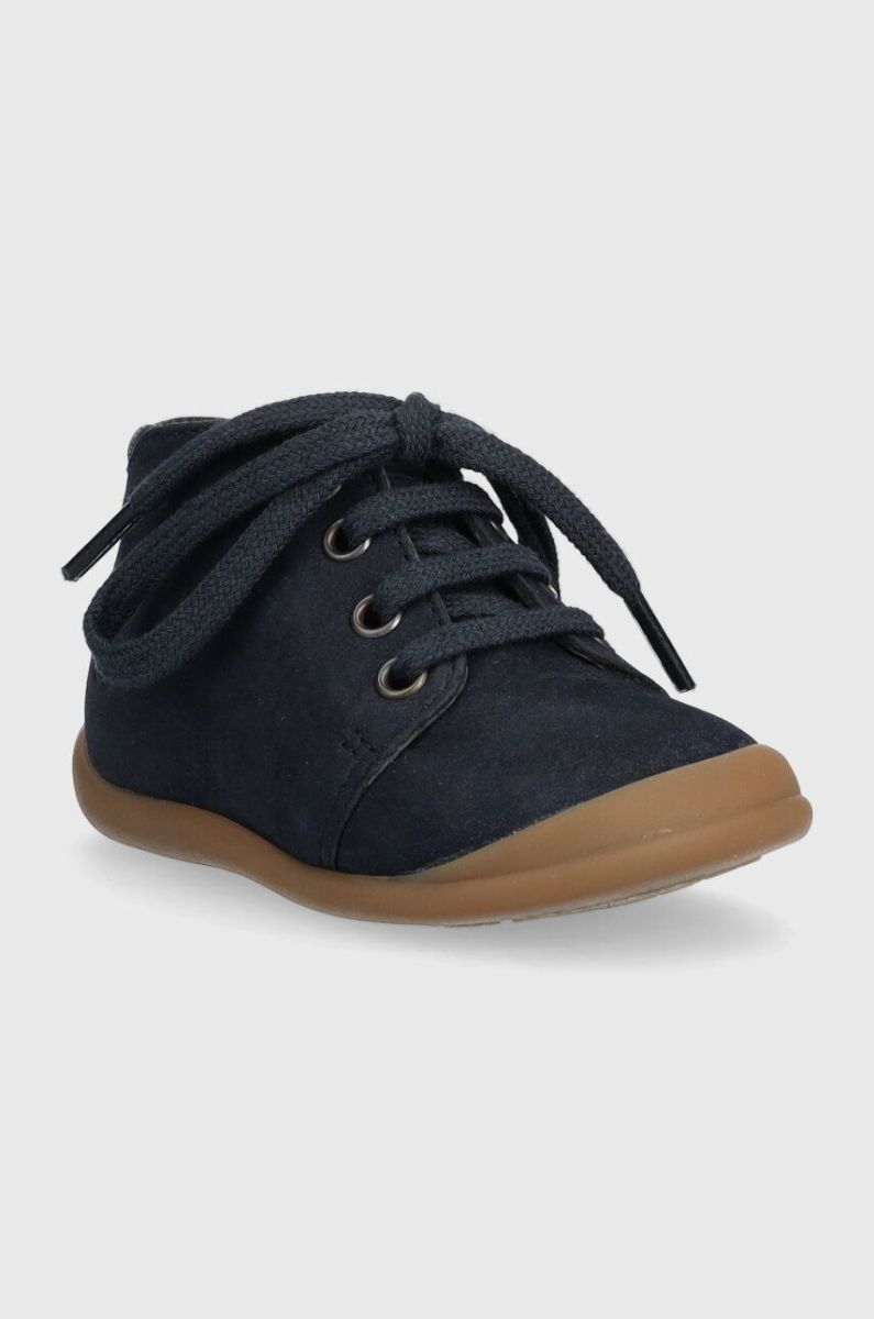 Дитячі замшеві туфлі Pom D'api FLEX-UP BOTTINE колір синій
