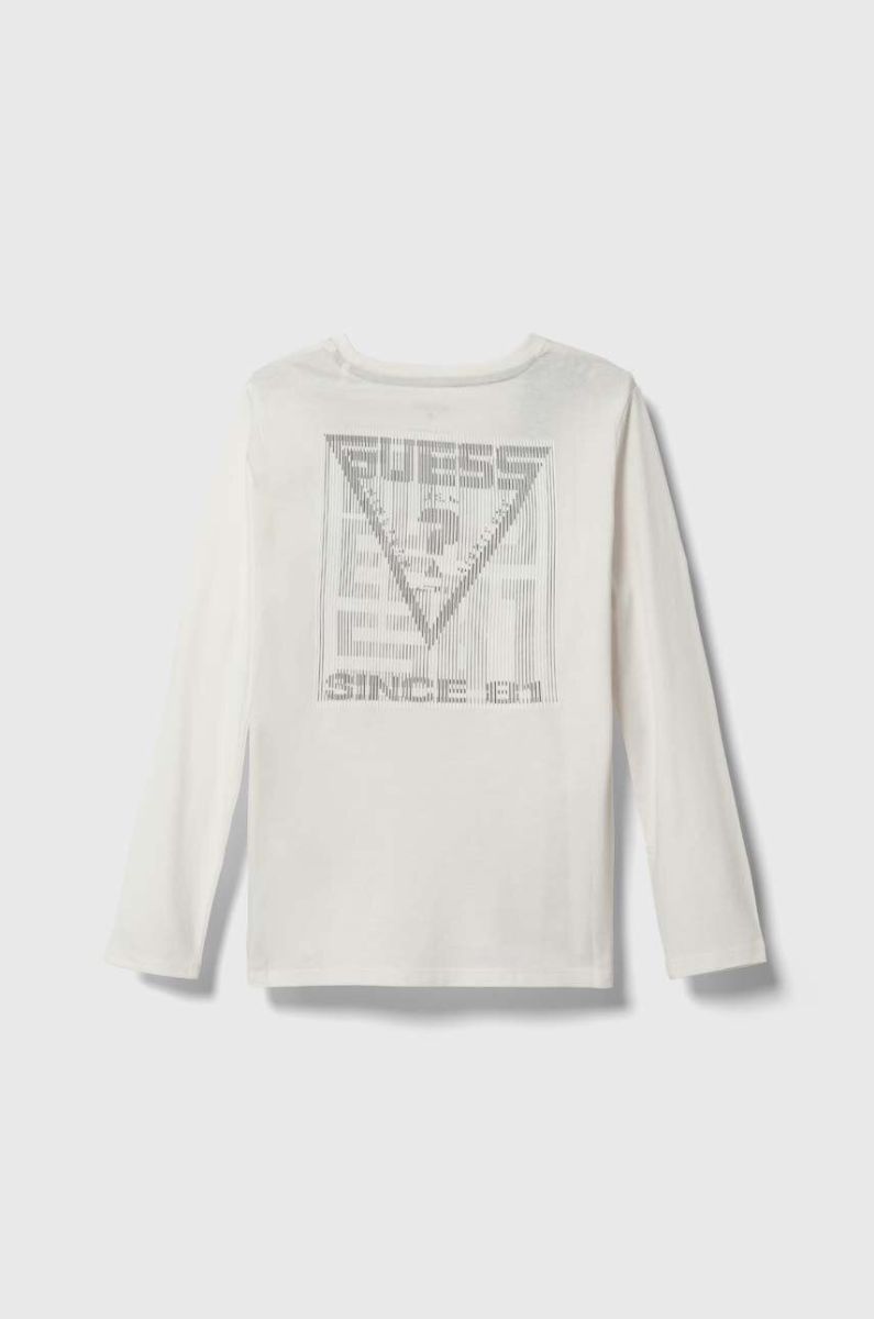 Дитячий бавовняний лонгслів Guess колір білий з принтом (3588085)