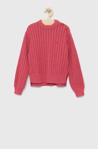 Дитячий бавовняний светр Tommy Hilfiger колір рожевий теплий