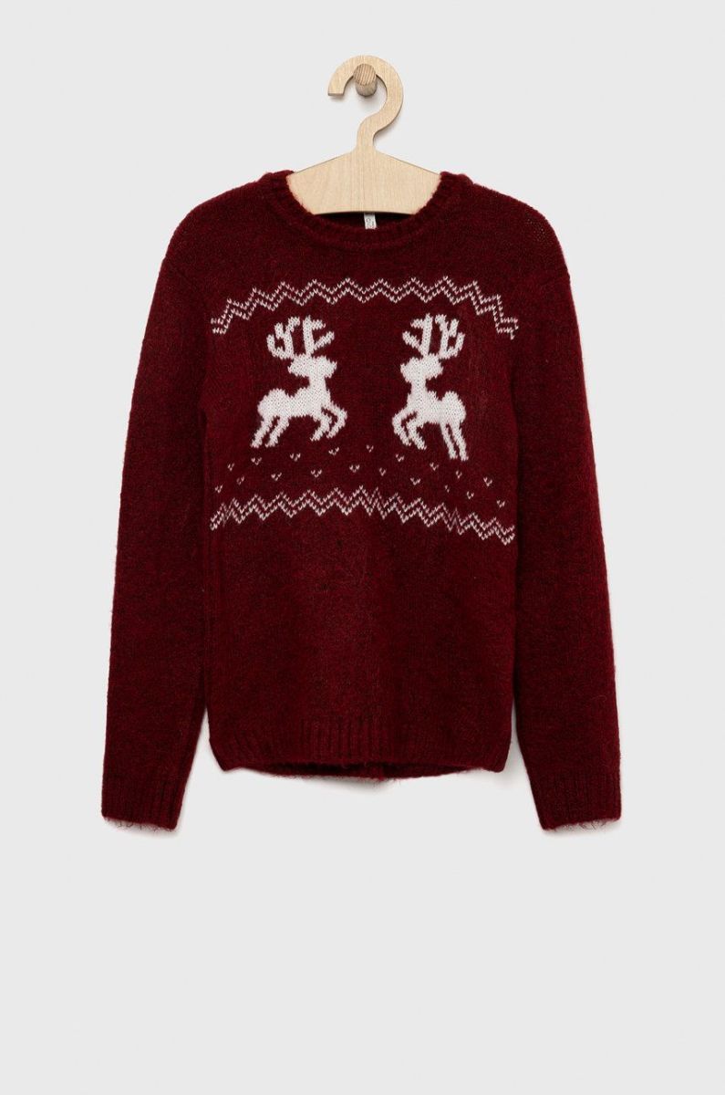 Дитячий светр з домішкою вовни Birba&Trybeyond колір бордовий