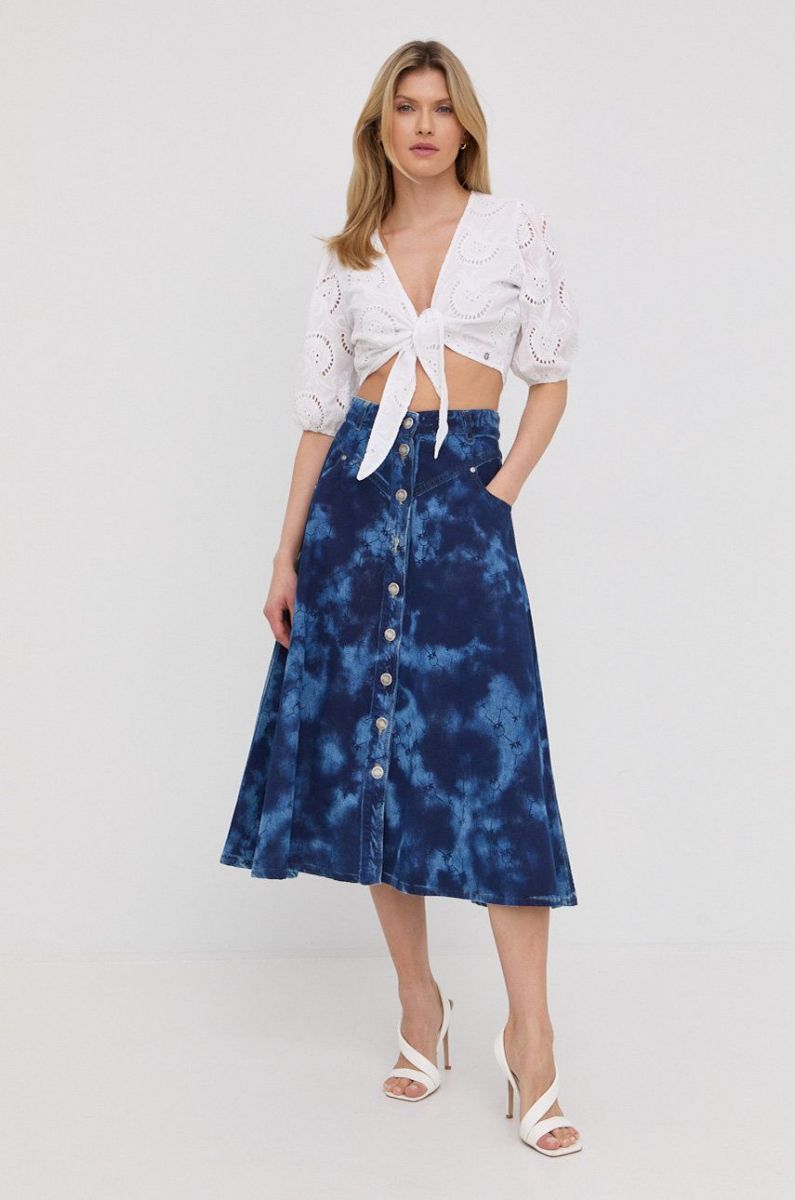Джинсова спідниця Pinko midi розкльошена колір блакитний