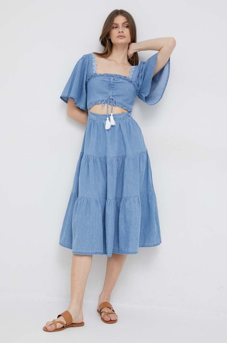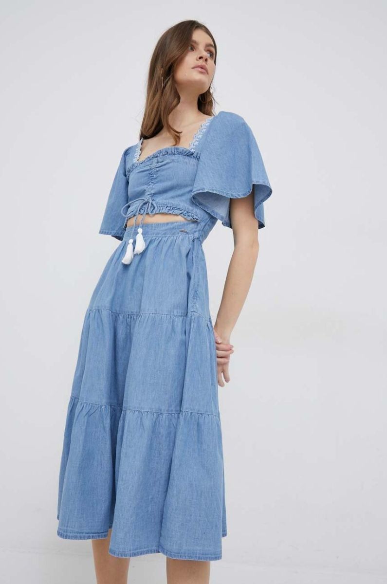 Джинсова сукня Pepe Jeans Aitana midi розкльошена колір блакитний