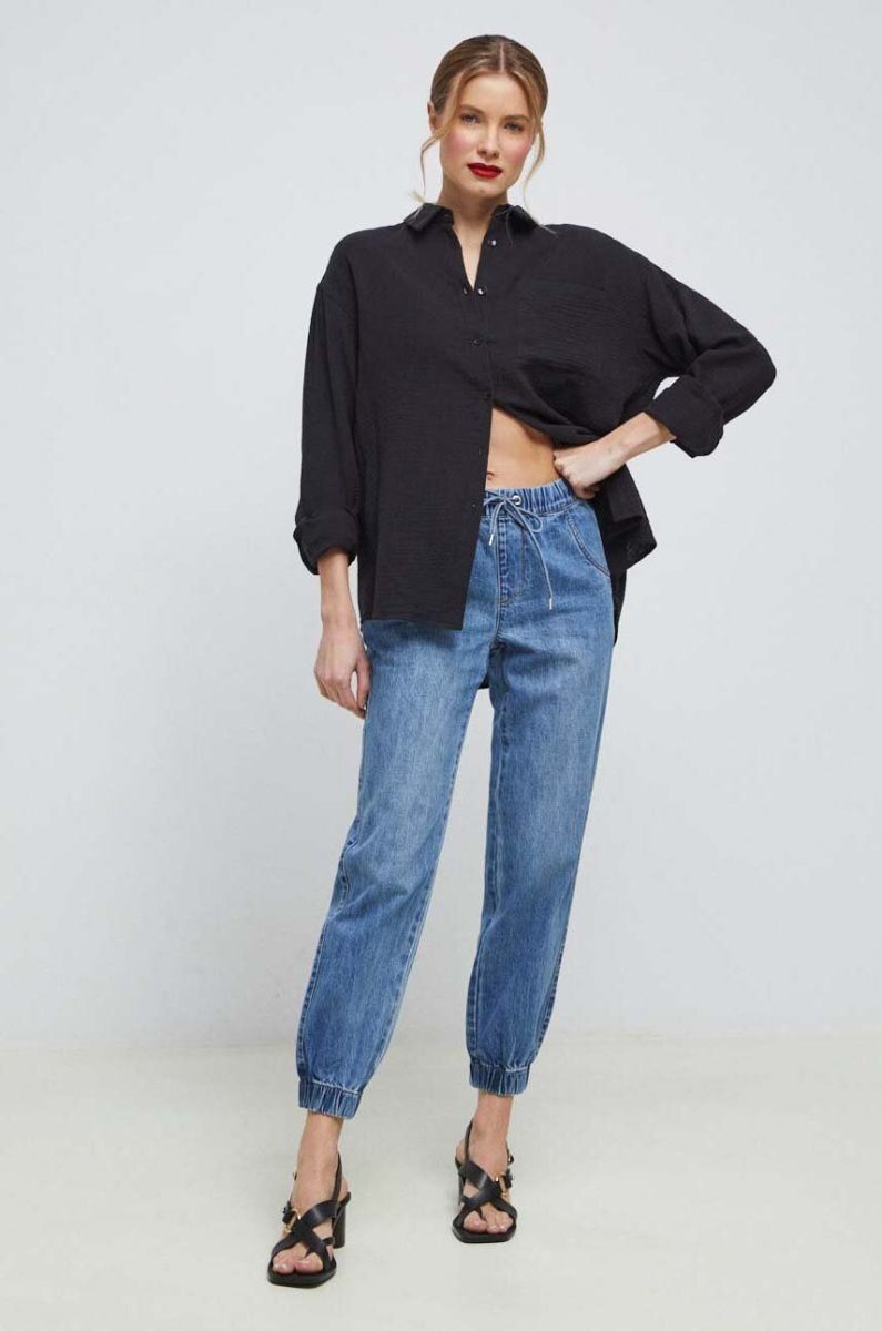 - Фасон jogger - джинси вирізняються тим, що штанина закінчується резинкою, а більш вільна форма надає їм характеру вуличної моди. Крій запозичили у спортивних штанів - вони універсальні та зручні в носінні, а також підходять для всіх типів фігури.