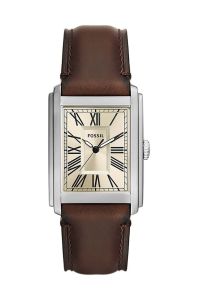 Годинник із колекції Fossil. Модель із прямокутною формою і шкіряним ремінцем.