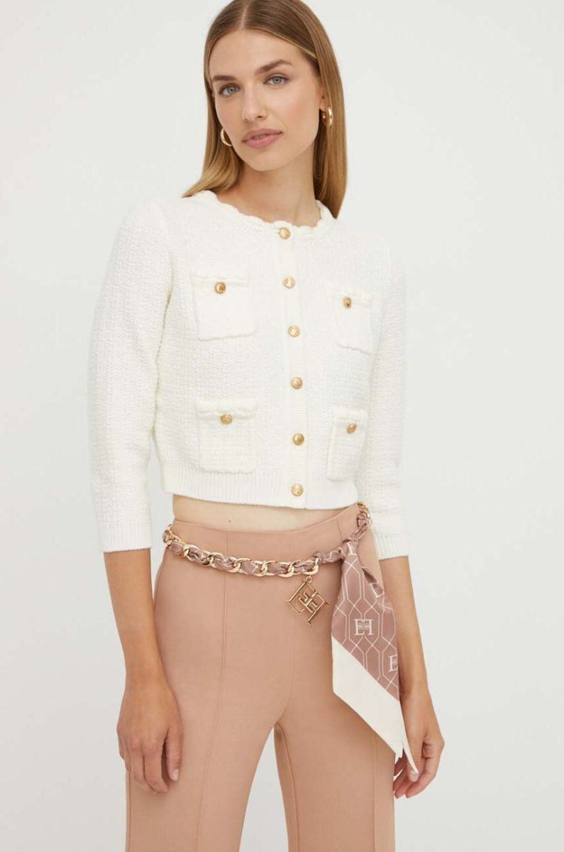 Кардиган з домішкою вовни Elisabetta Franchi колір бежевий легкий