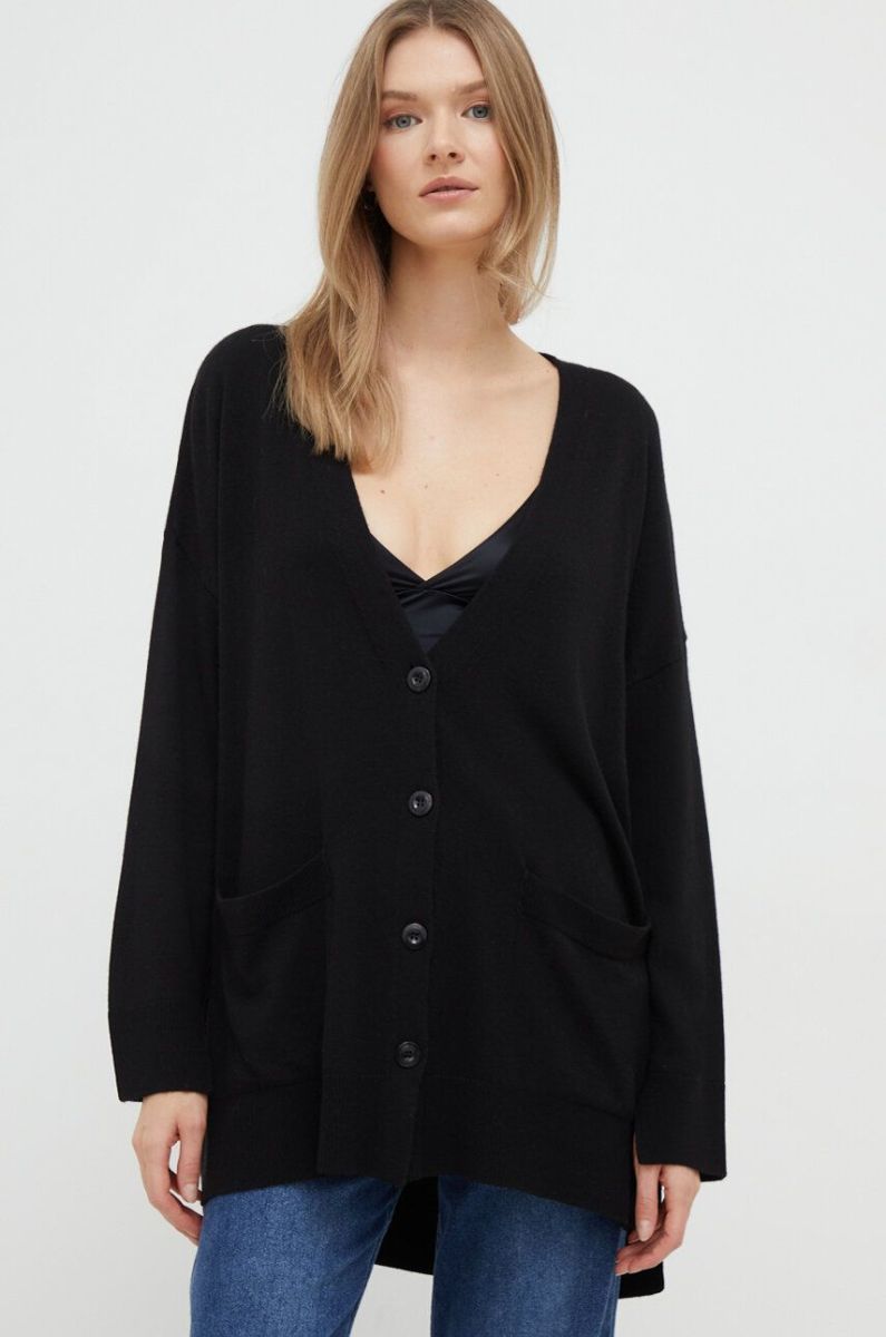Кардиган з домішкою вовни Sisley колір чорний легкий (3630447)