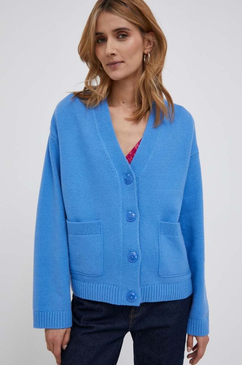 Кардиган з домішкою вовни Tommy Hilfiger теплий колір блакитний