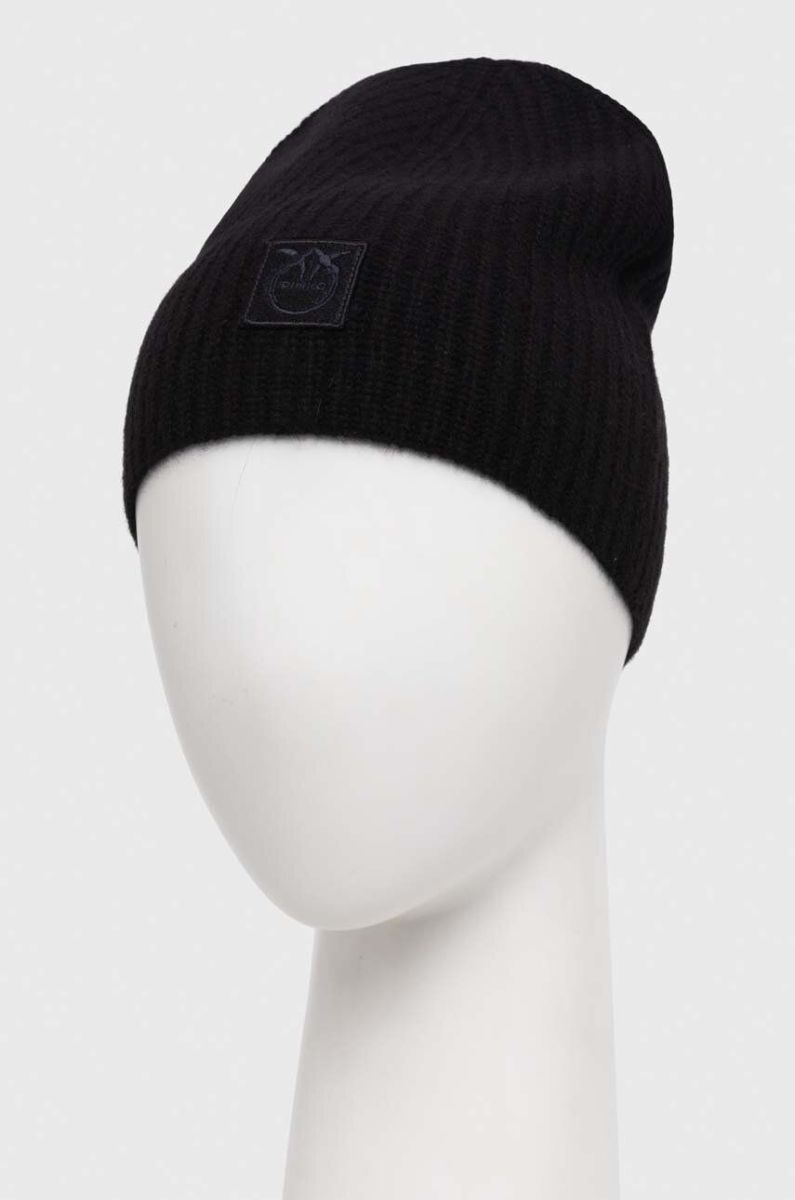 Кашемірова шапка Pinko колір чорний з тонкого трикотажу вовна