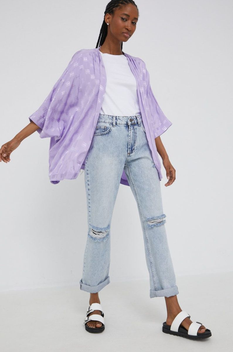 Кімоно Answear Lab колір фіолетовий без застібки однотонна
