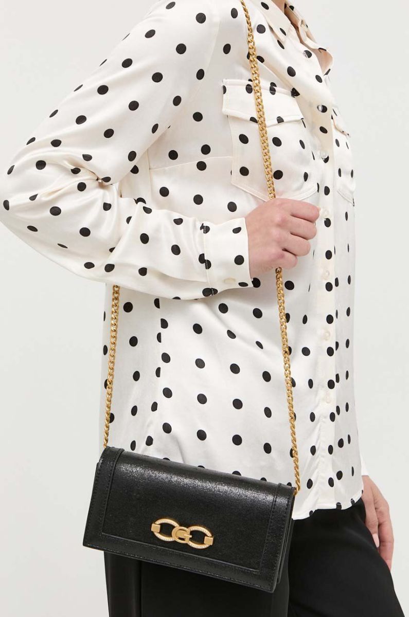 Середнього розміру сумка-клатч з колекції Guess. Застібна модель виконана зі штучної шкіри. Ефектний, блискучий матеріал.