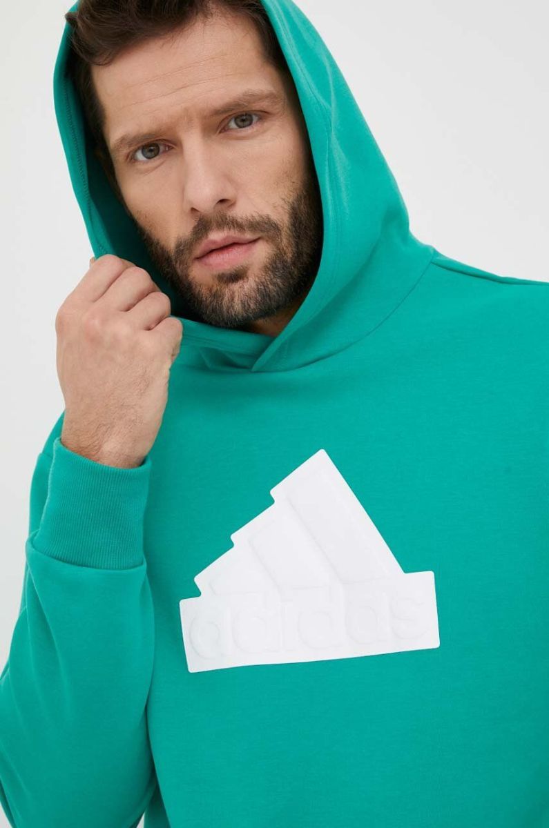 Кофта adidas чоловіча колір зелений з капюшоном з принтом (3241022)
