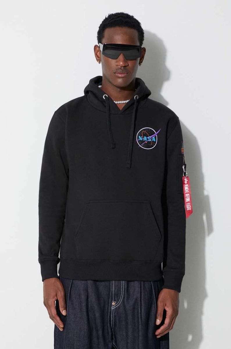 Кофта Alpha Industries x Nasa чоловіча колір чорний з капюшоном з аплікацією