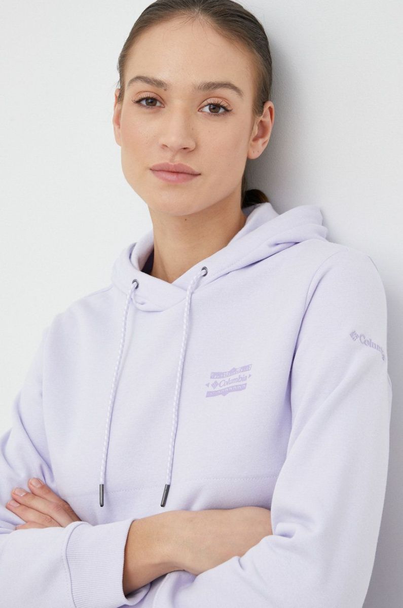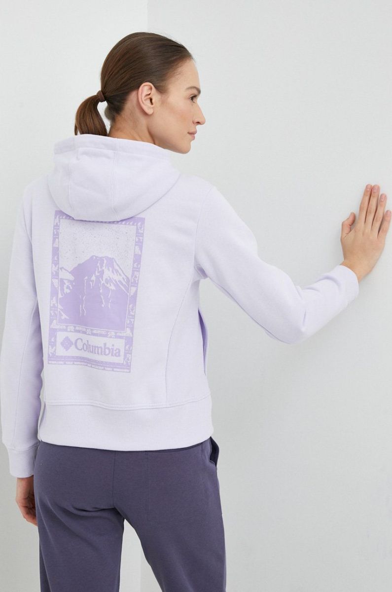 Кофта Columbia жіноча колір фіолетовий з капюшоном з принтом