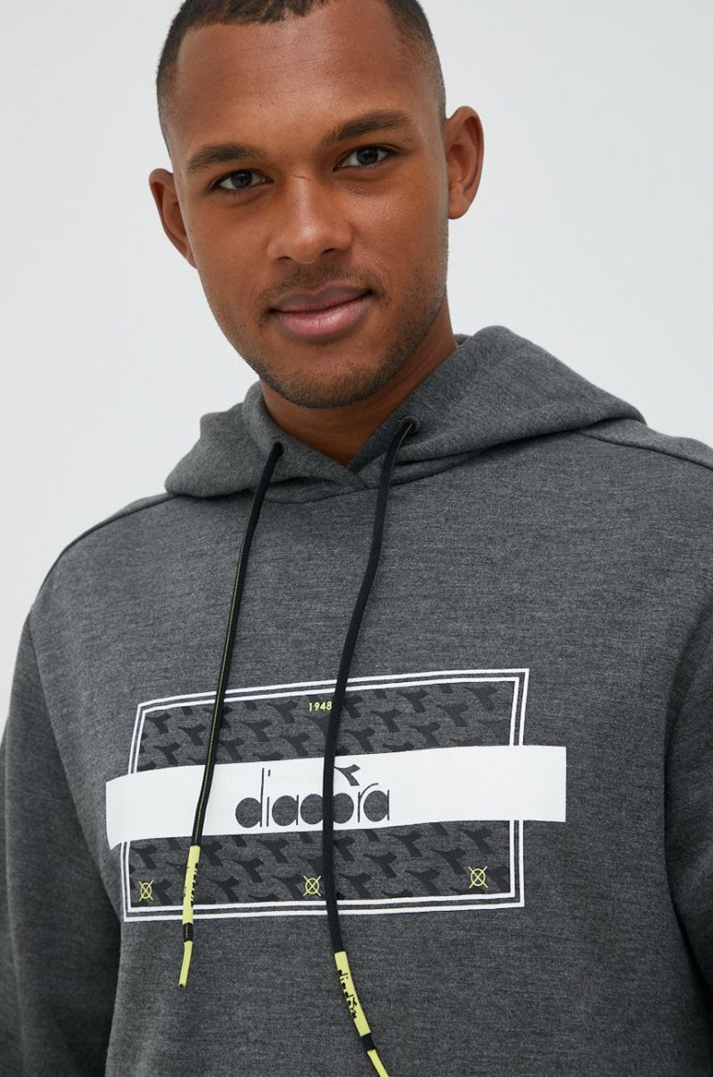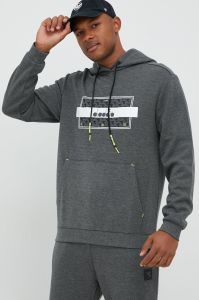 Кофта Diadora чоловіча колір сірий з капюшоном з принтом