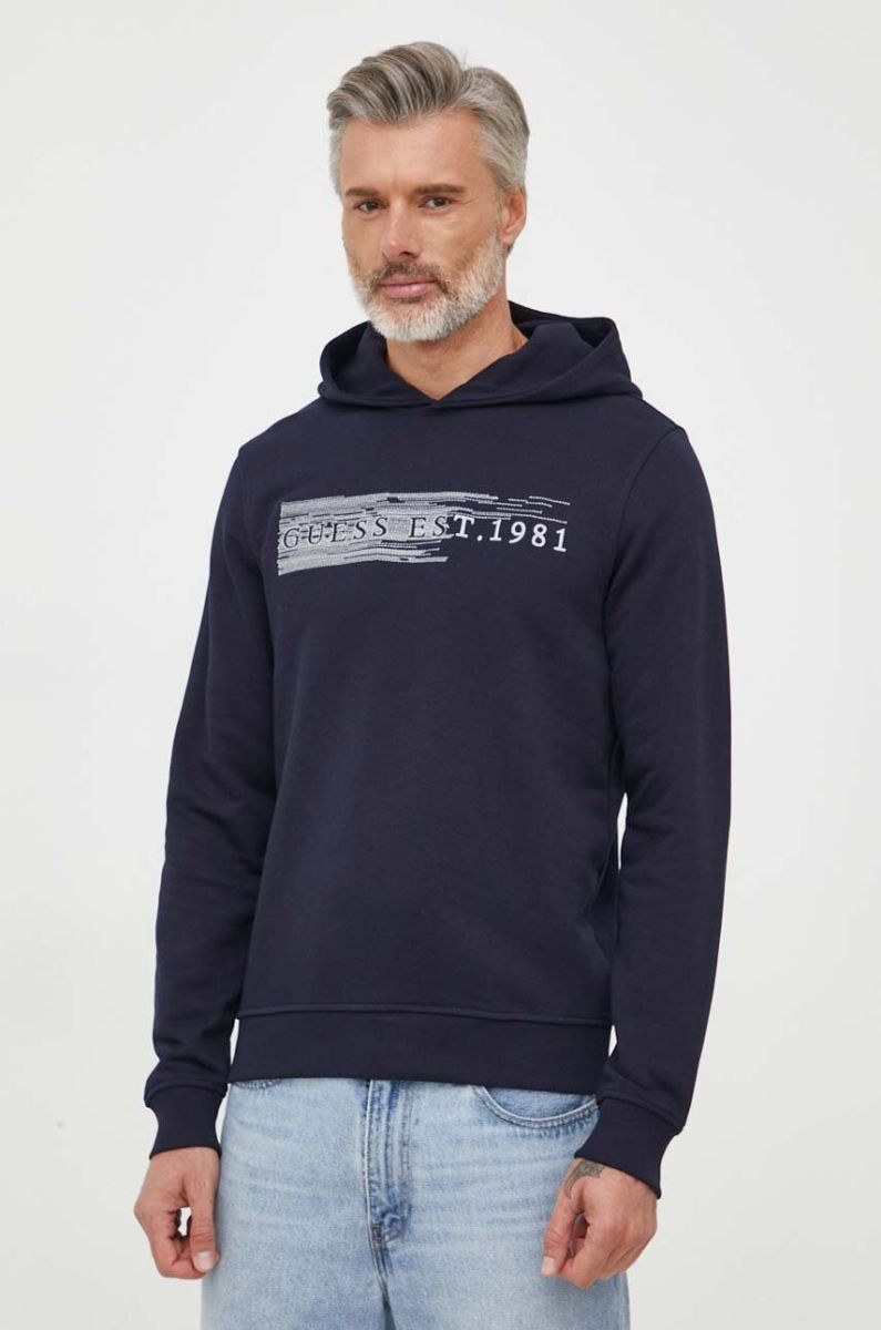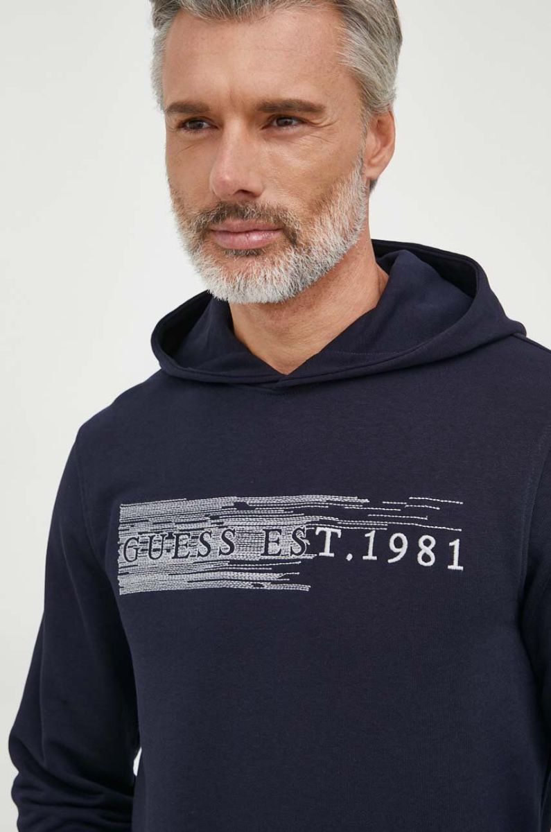 Кофта Guess чоловіча колір синій з капюшоном з аплікацією (3334968)