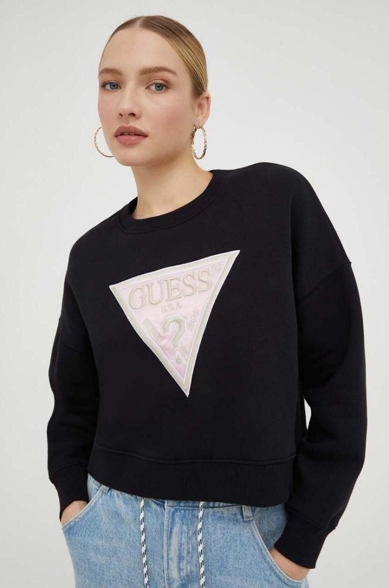 Кофта Guess жіноча колір чорний з аплікацією (3503682)