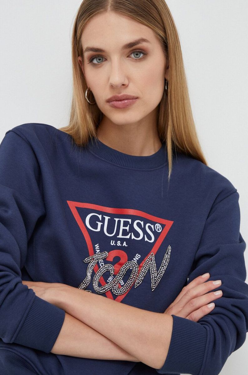Кофта Guess жіноча колір синій з аплікацією (3656661)