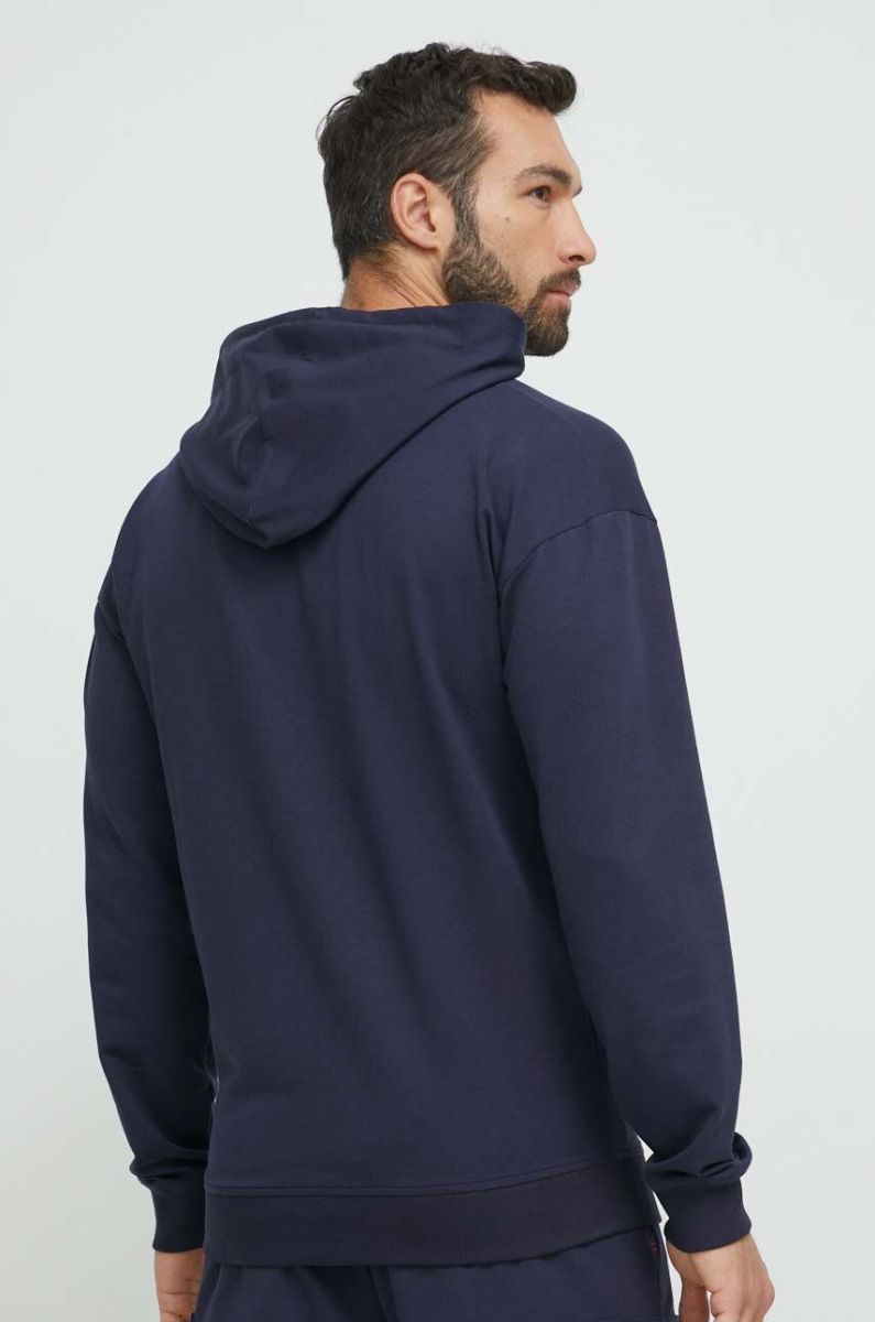 Кофта HUGO чоловіча колір синій з капюшоном з аплікацією