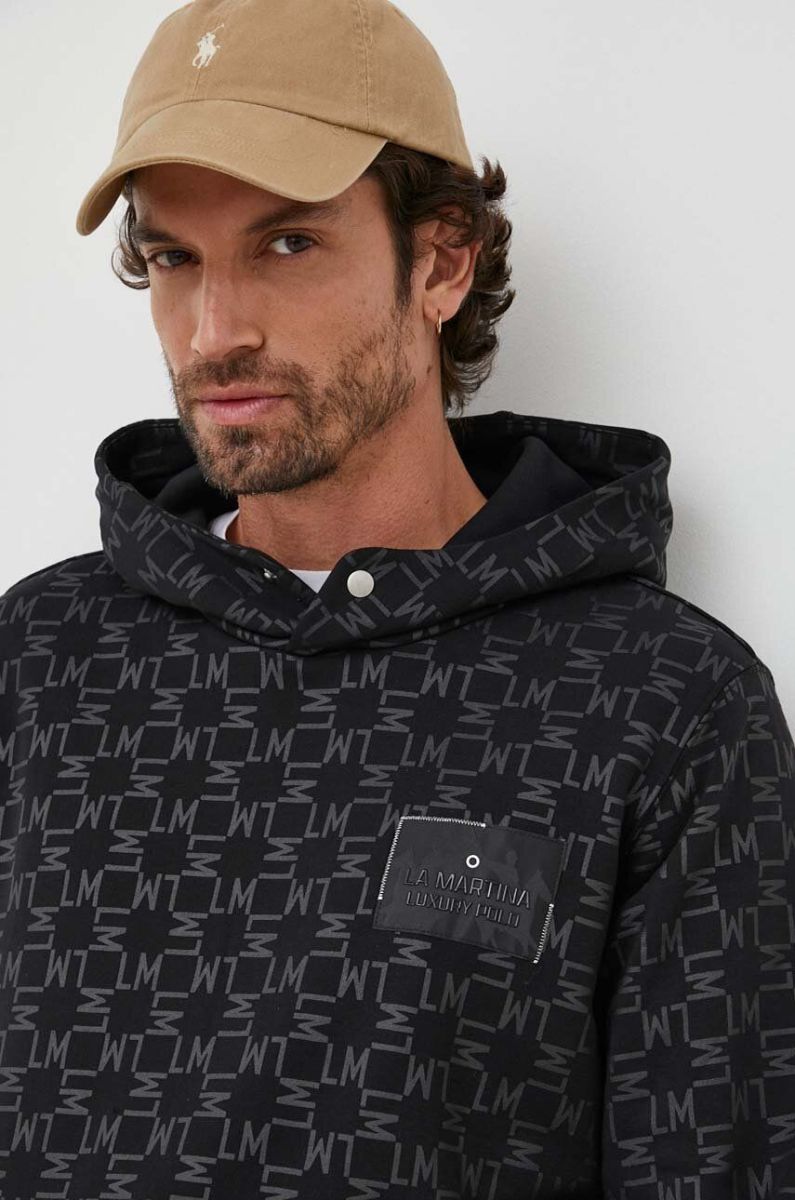 Кофта La Martina чоловіча колір чорний з капюшоном візерунок