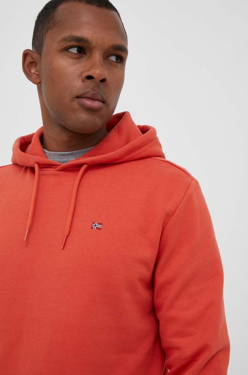 Кофта Napapijri чоловіча колір помаранчевий з капюшоном однотонна