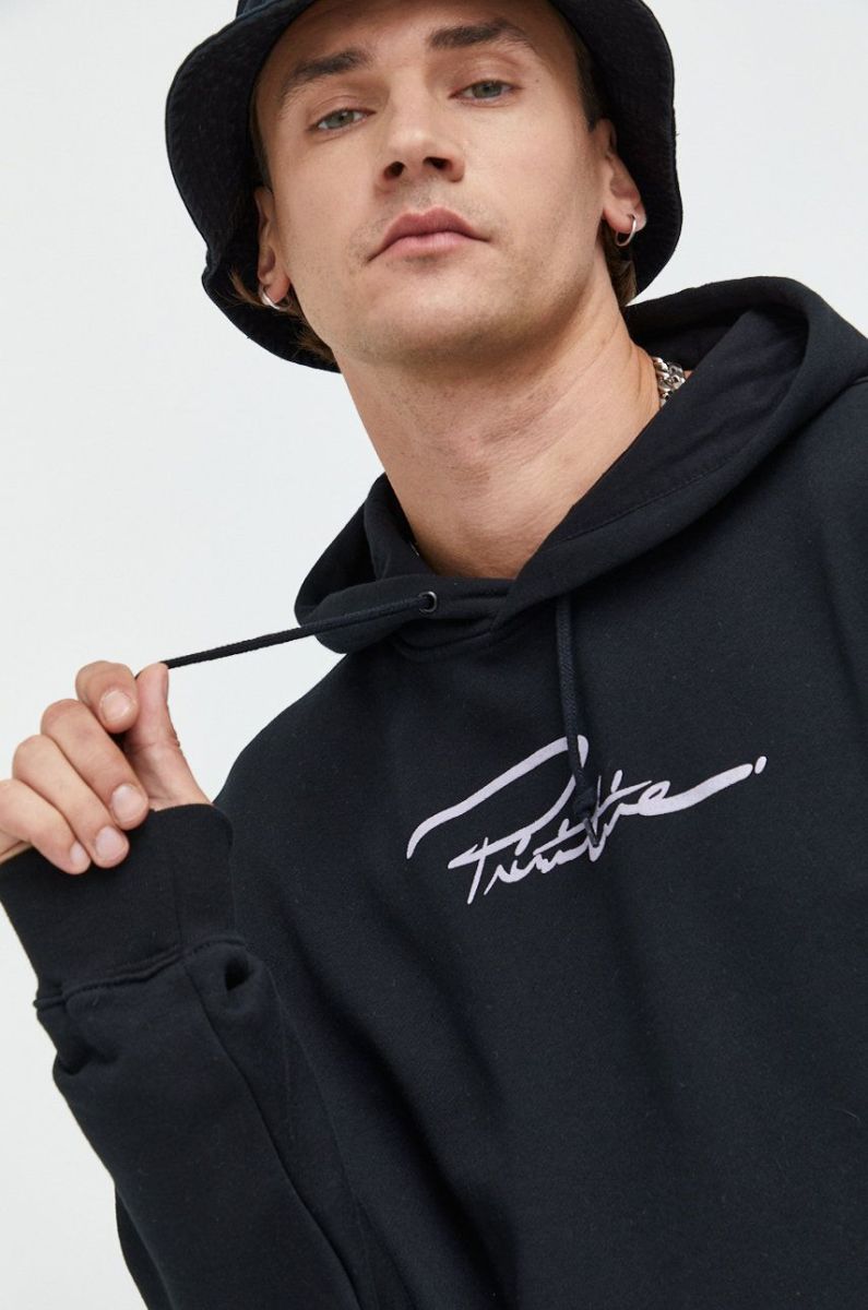 Кофта Primitive чоловіча колір чорний з капюшоном з принтом