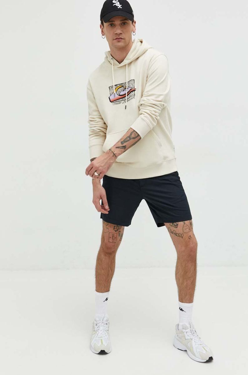 Кофта Quiksilver чоловіча колір бежевий з капюшоном з принтом (3098723)