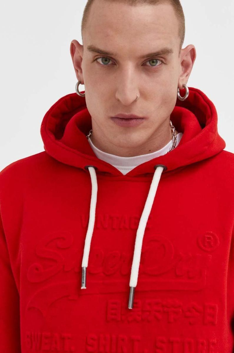 Кофта Superdry чоловіча колір червоний з капюшоном з аплікацією