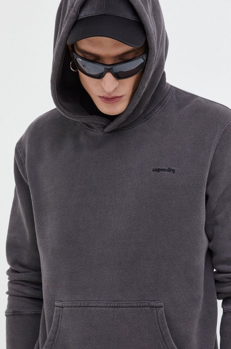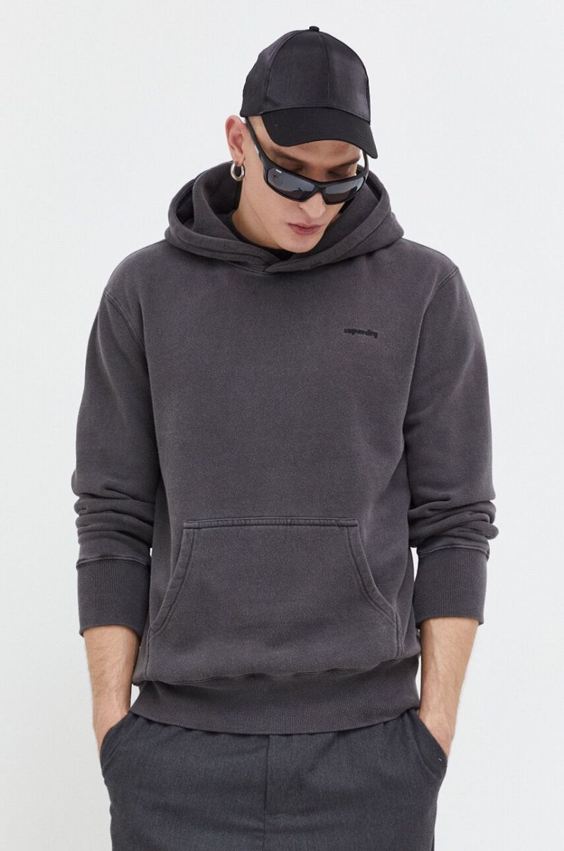 Кофта Superdry чоловіча колір сірий з капюшоном однотонна