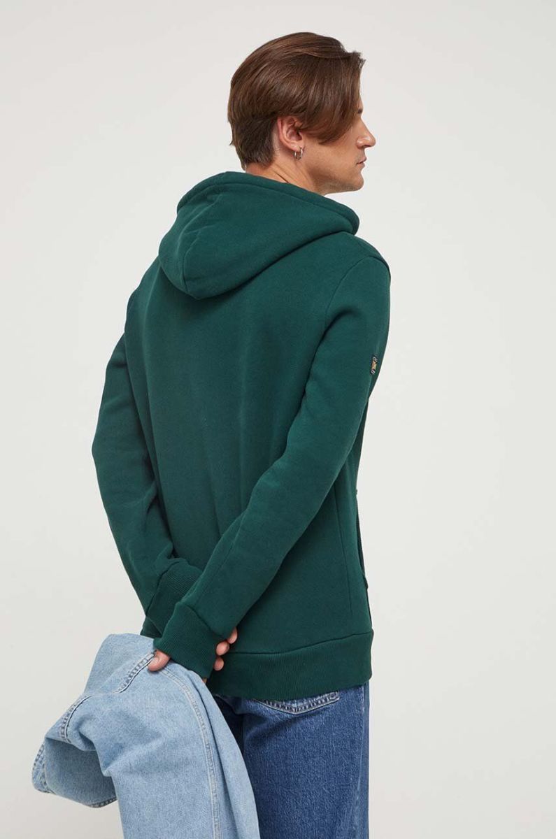 Кофта Superdry чоловіча колір зелений з капюшоном з аплікацією