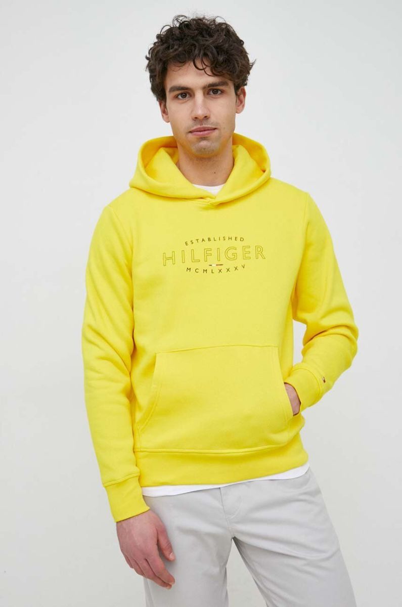 Кофта Tommy Hilfiger чоловіча колір жовтий з капюшоном з принтом
