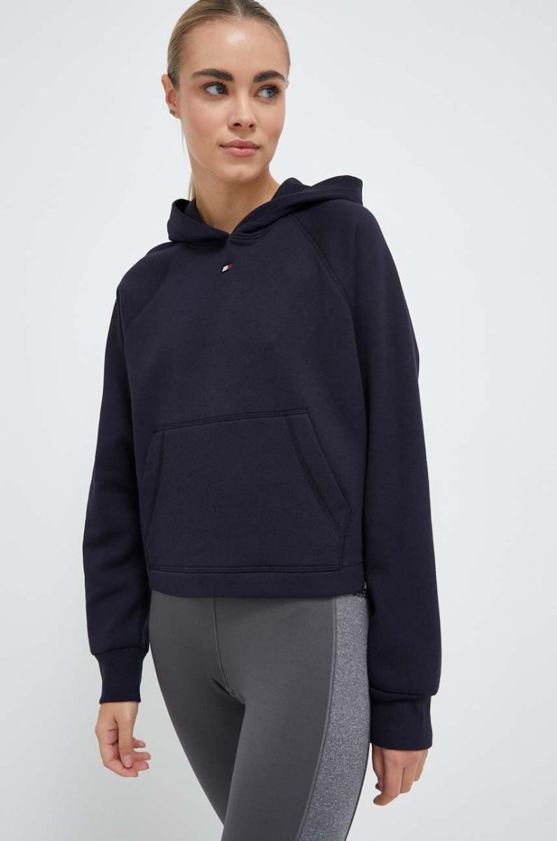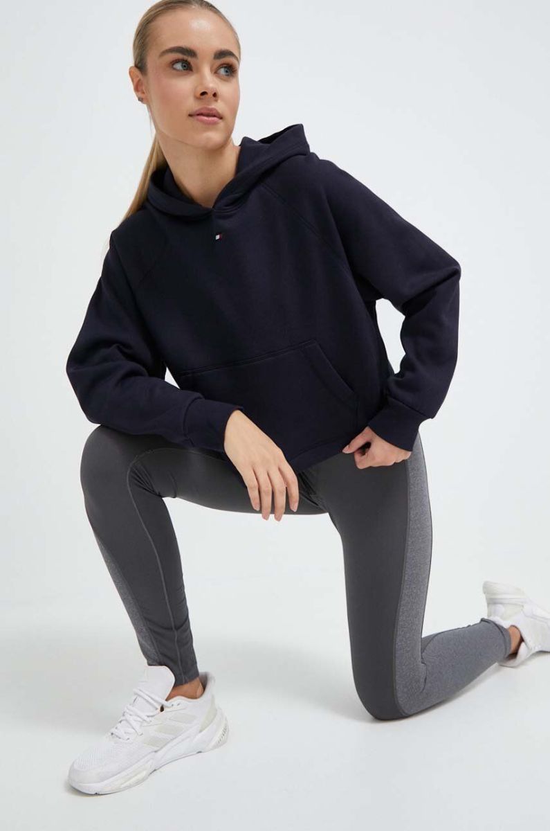 Кофта Tommy Hilfiger жіноча колір синій з капюшоном з принтом (3240902)