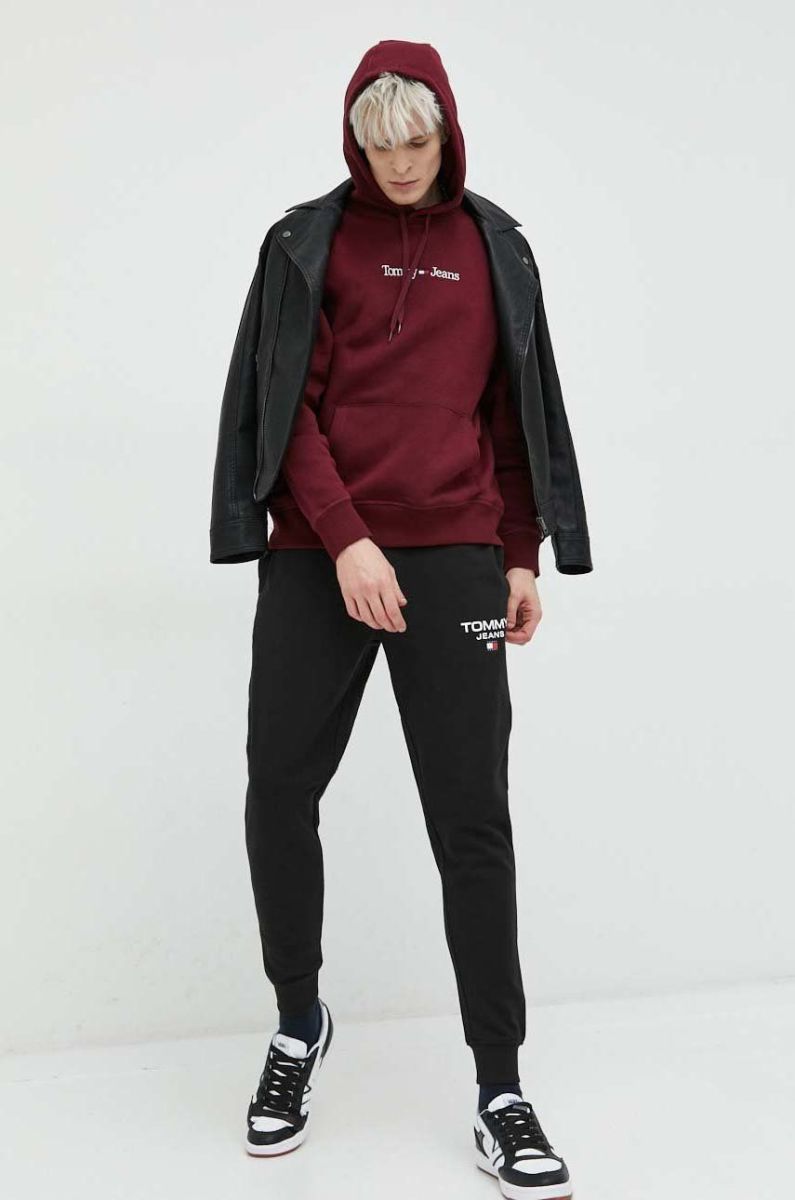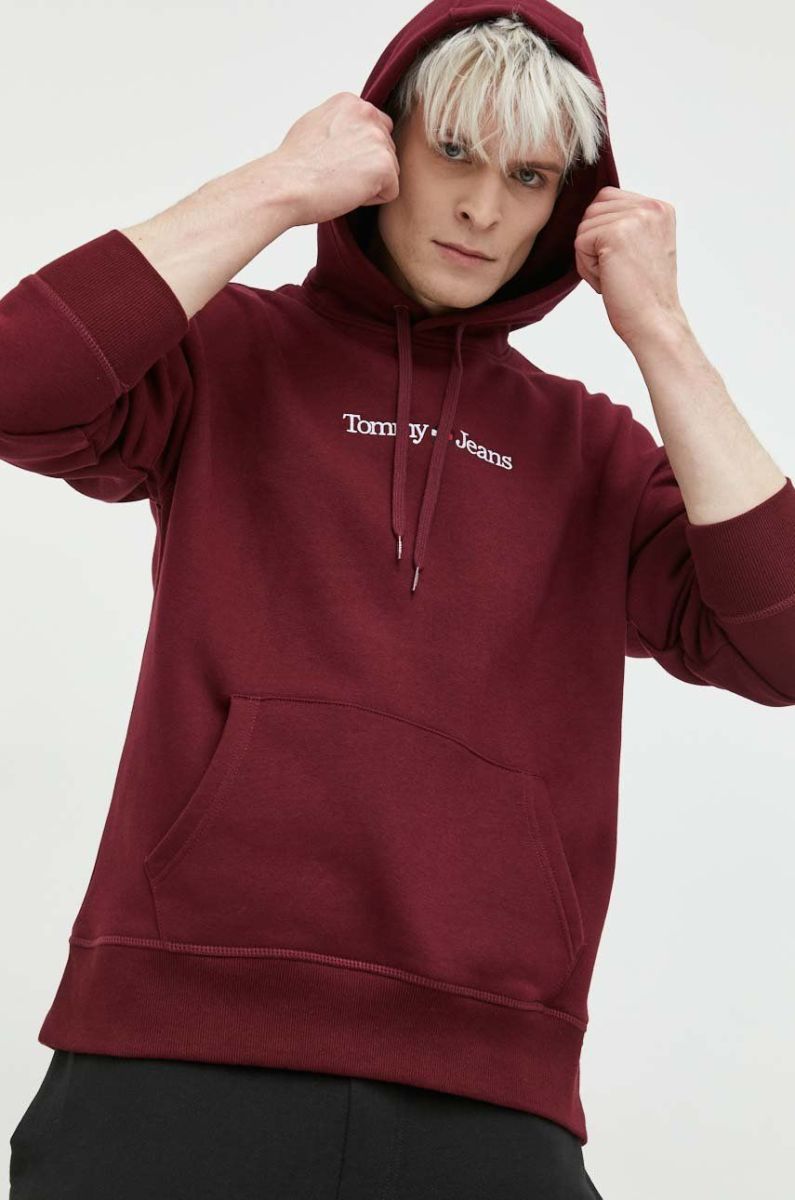 Кофта Tommy Jeans чоловіча колір бордовий з капюшоном з аплікацією