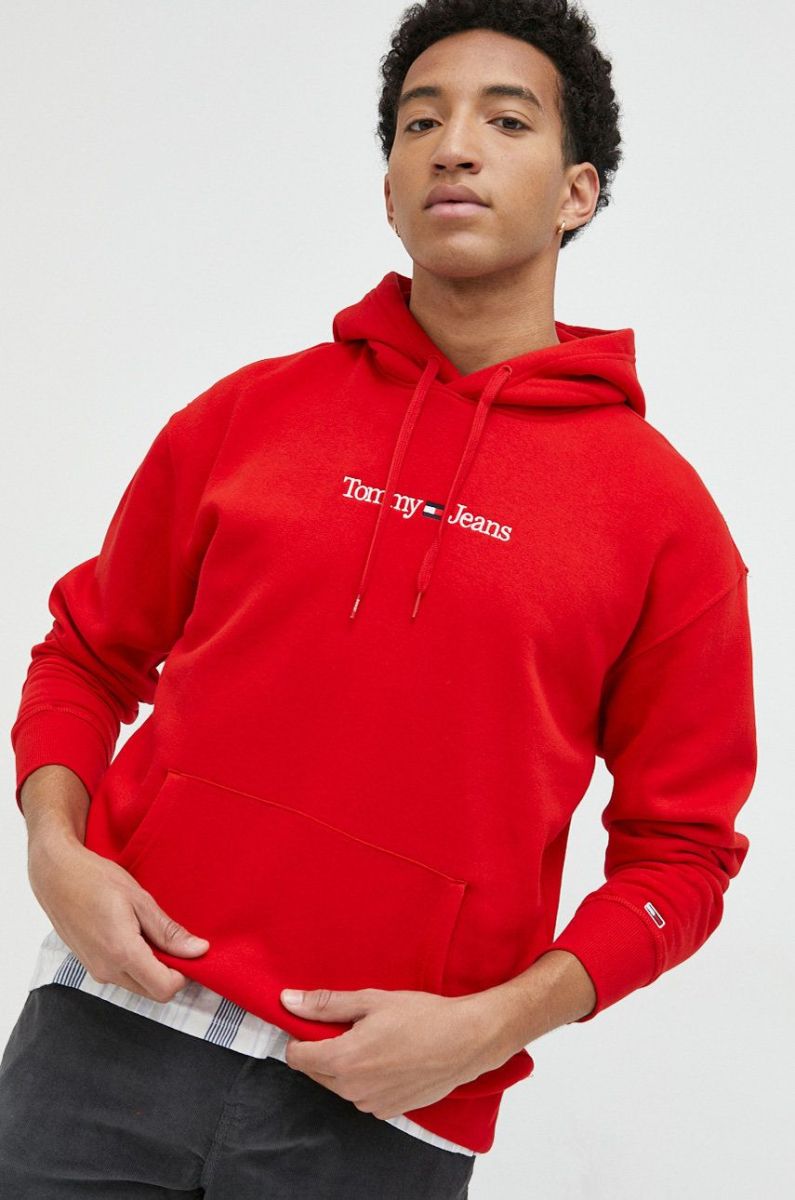 Кофта Tommy Jeans чоловіча колір червоний з капюшоном з аплікацією