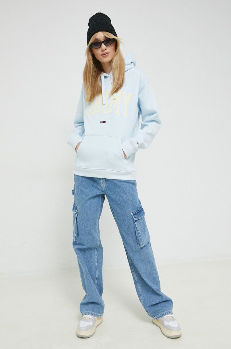Кофта Tommy Jeans жіноча з капюшоном з аплікацією колір блакитний (2919567)