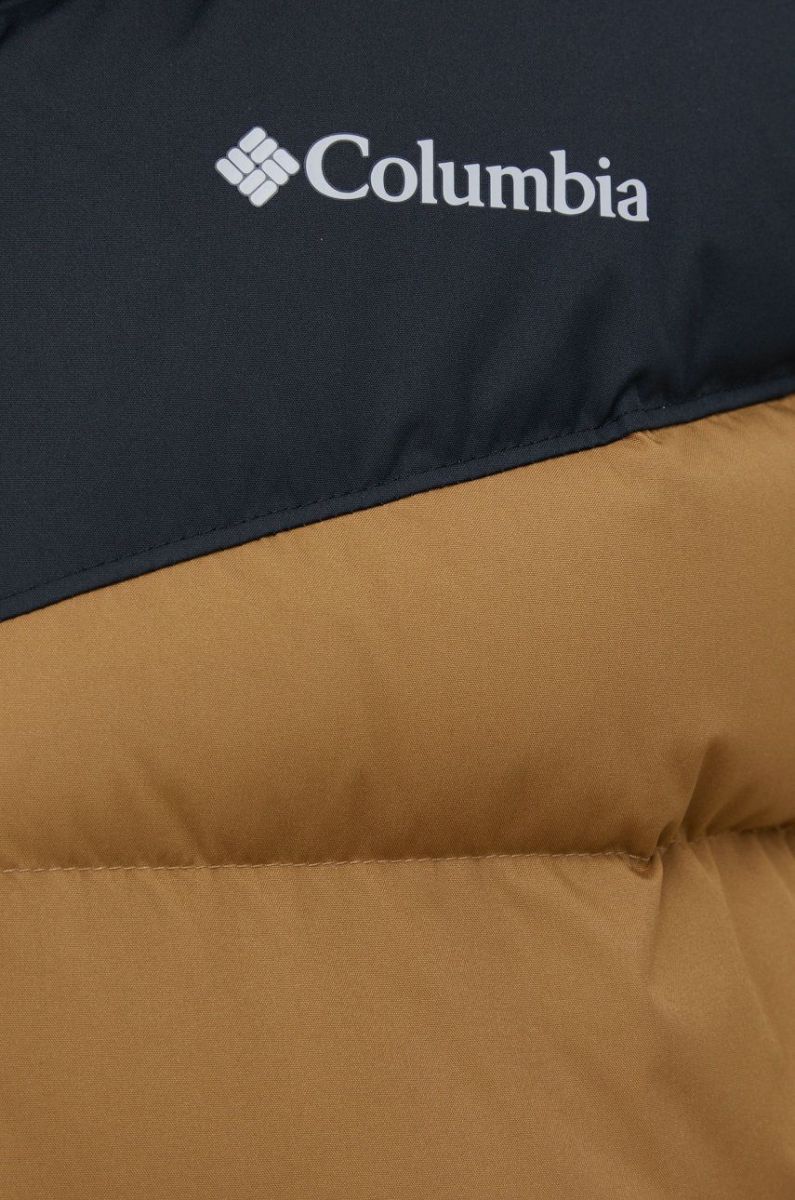 - Високий комір, що закриває підборіддя, та капюшон, який регулюється зав’язками, забезпечують захист від холоду, вітру, снігу та дощу.