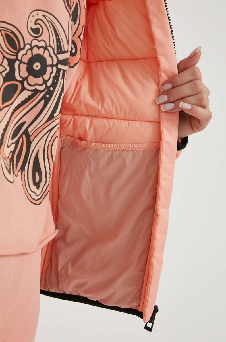 - Рукава та нижній край оброблені еластичним подолом, завдяки якому одяг краще прилягає до тіла та легко одягається.