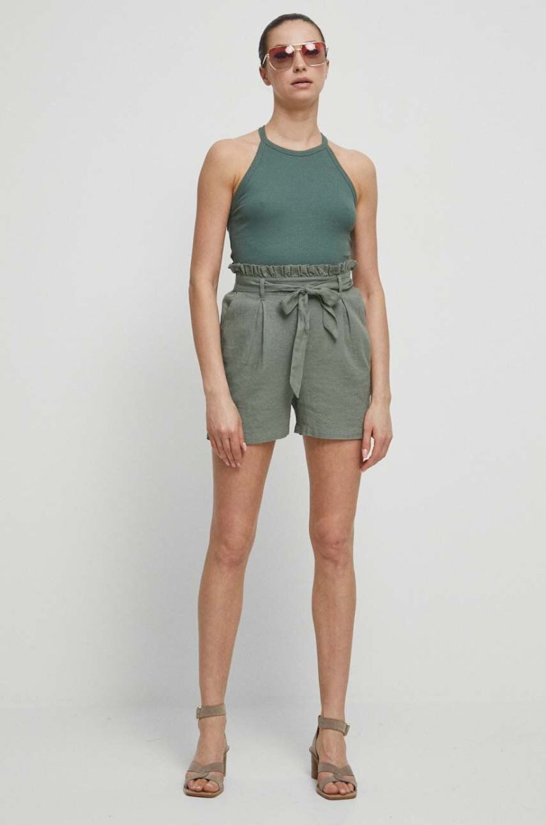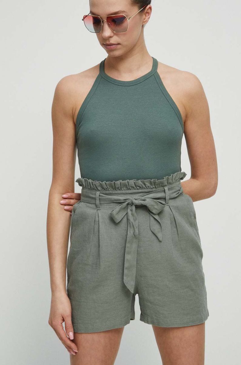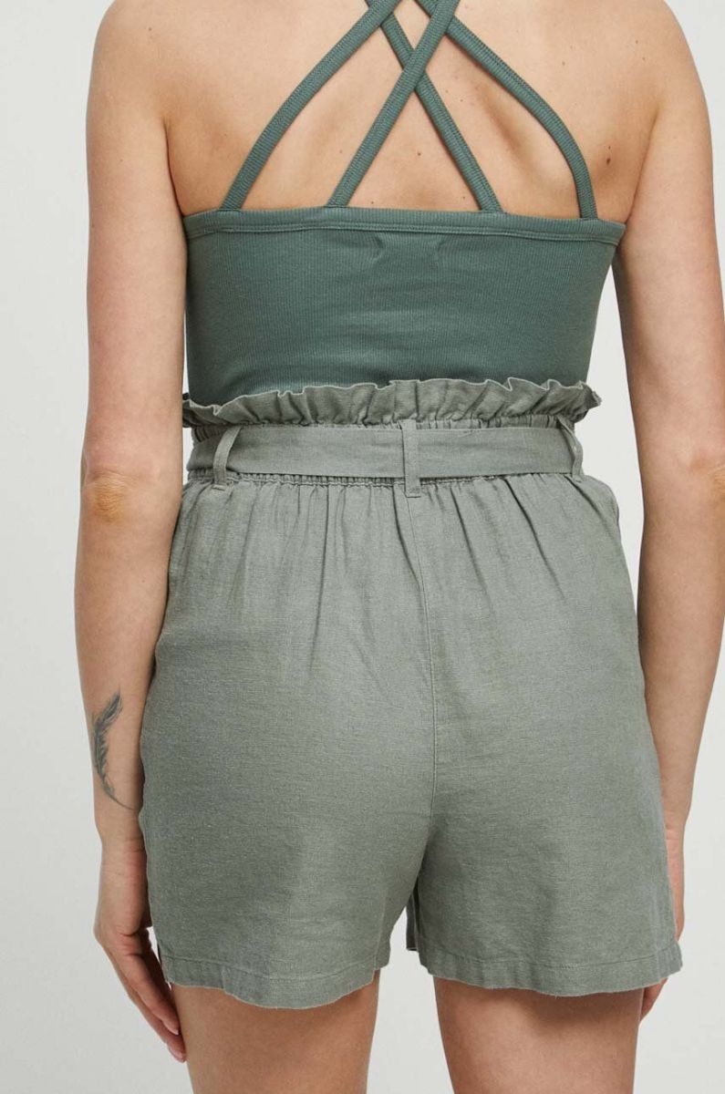 Лляні шорти Medicine жіночі колір бірюзовий візерунок висока посадка