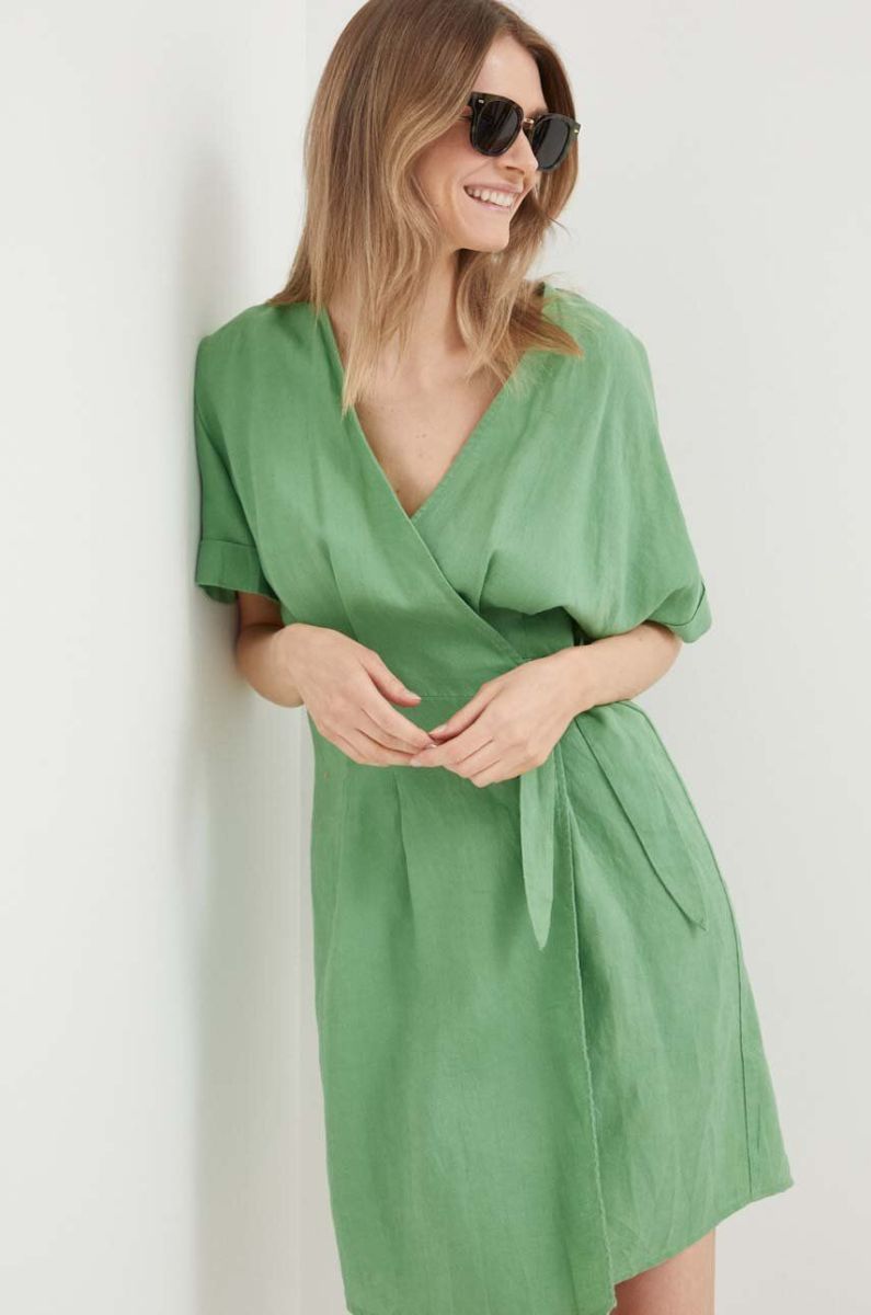Льняна сукня United Colors of Benetton колір зелений mini розкльошена