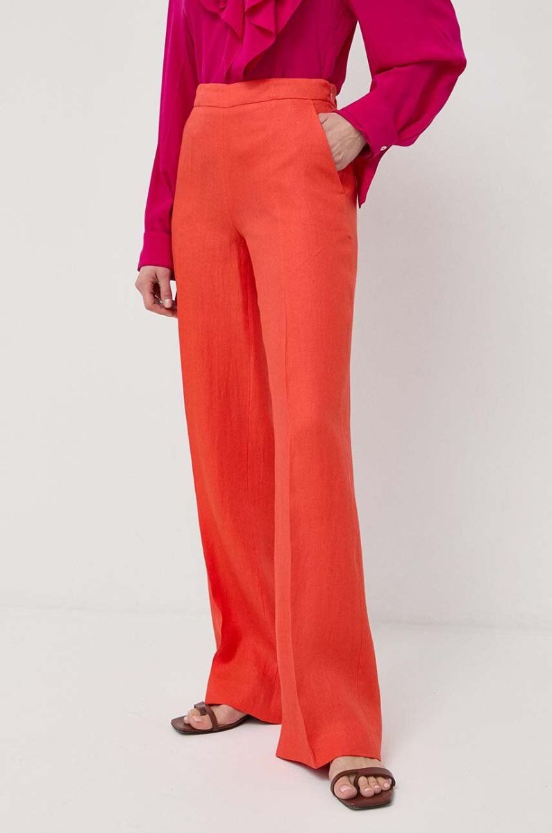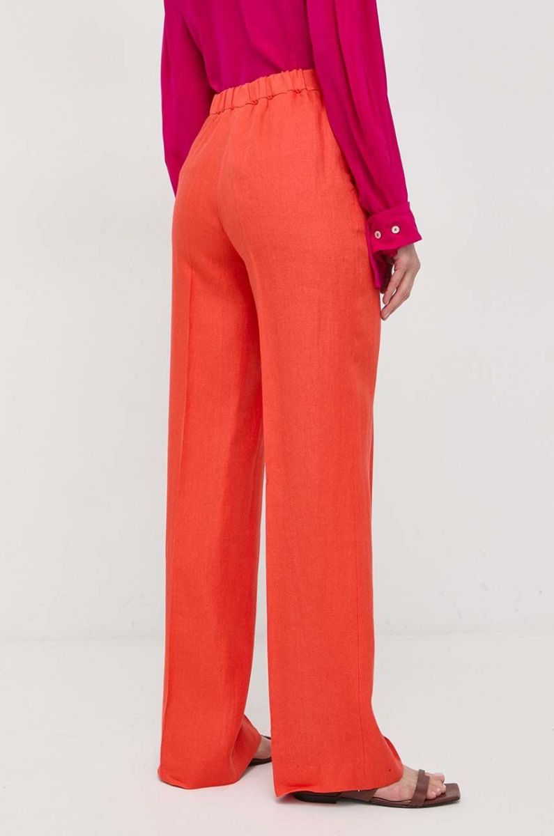Льняні штани Luisa Spagnoli колір помаранчевий широке висока посадка