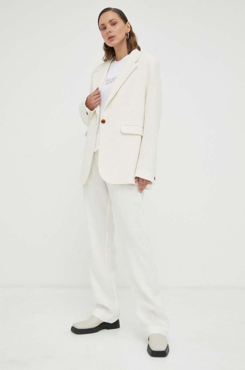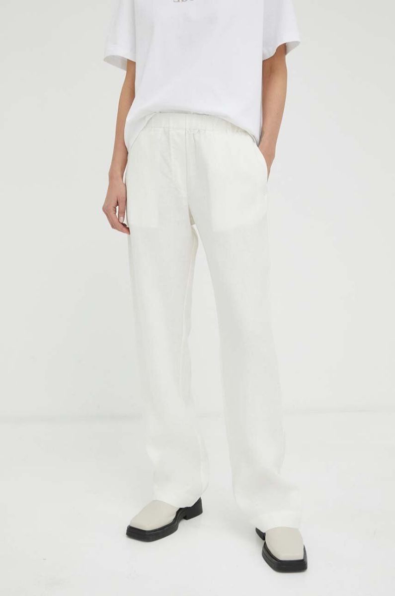 Льняні штани Samsoe Samsoe жіночі колір бежевий широке висока посадка