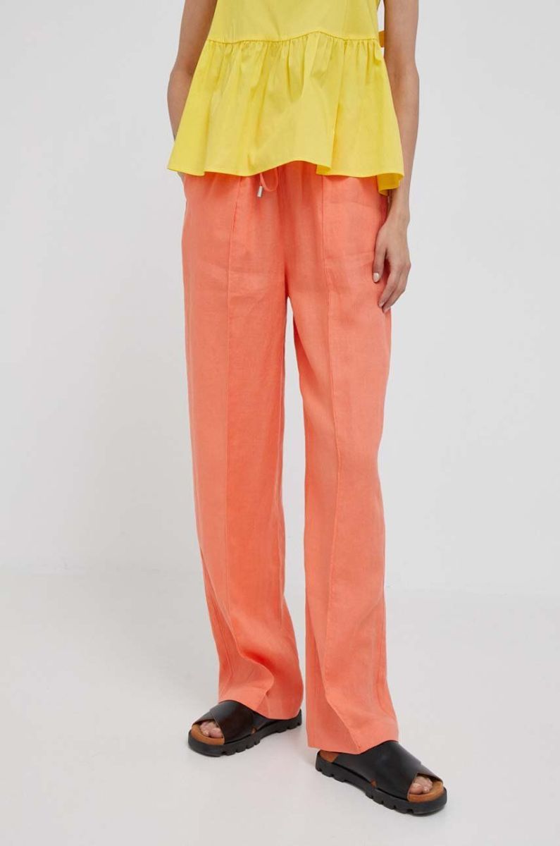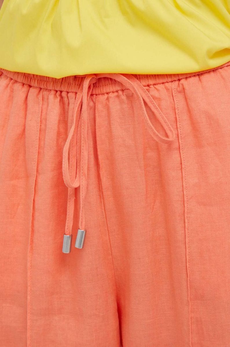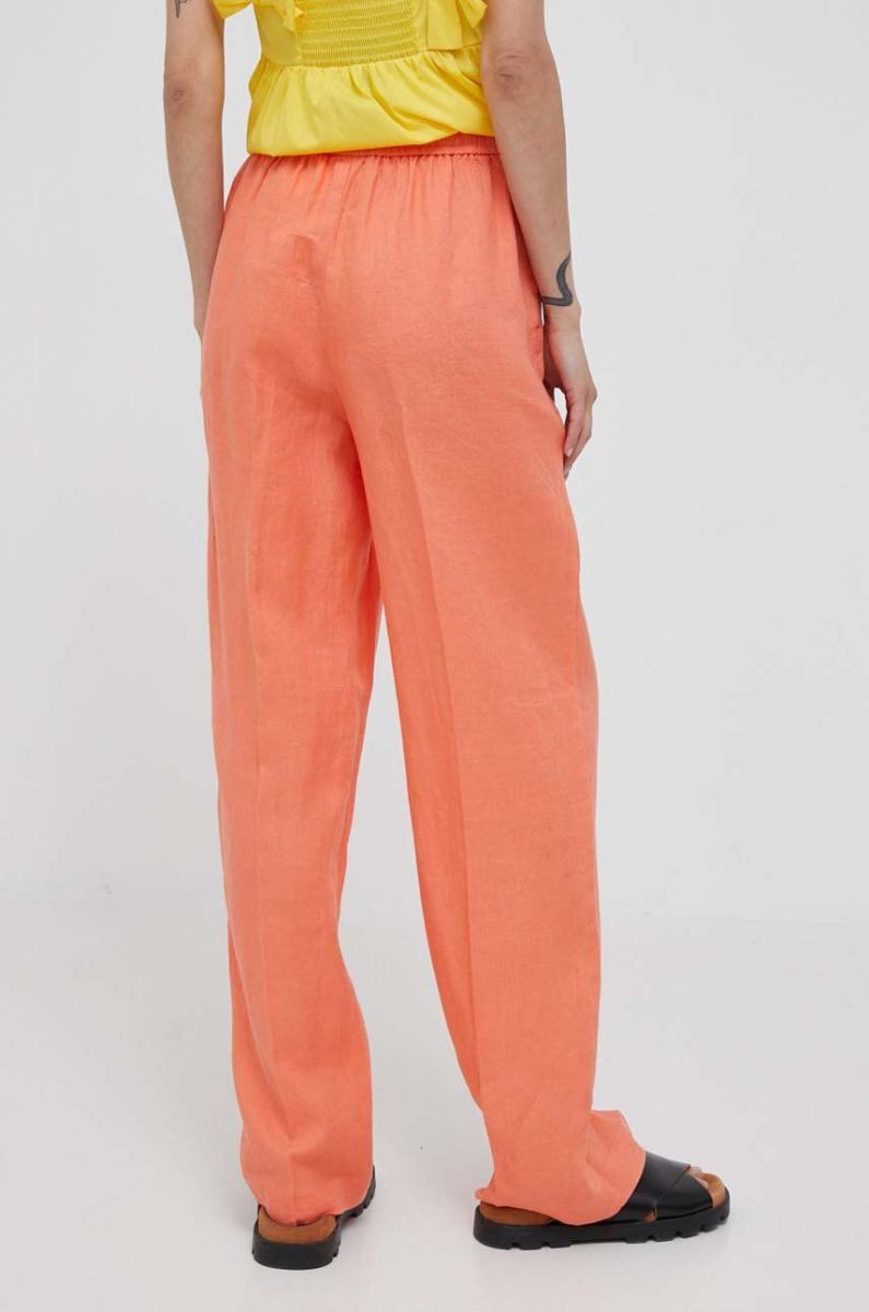 Льняні штани United Colors of Benetton колір помаранчевий широке висока посадка