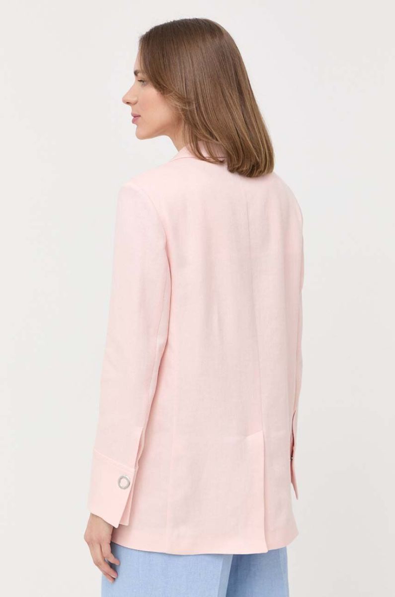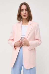 Льняний жакет BOSS колір рожевий однобортний однотонна
