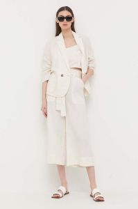 Льняний жакет MAX&Co. колір бежевий двобортний однотонна
