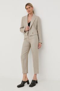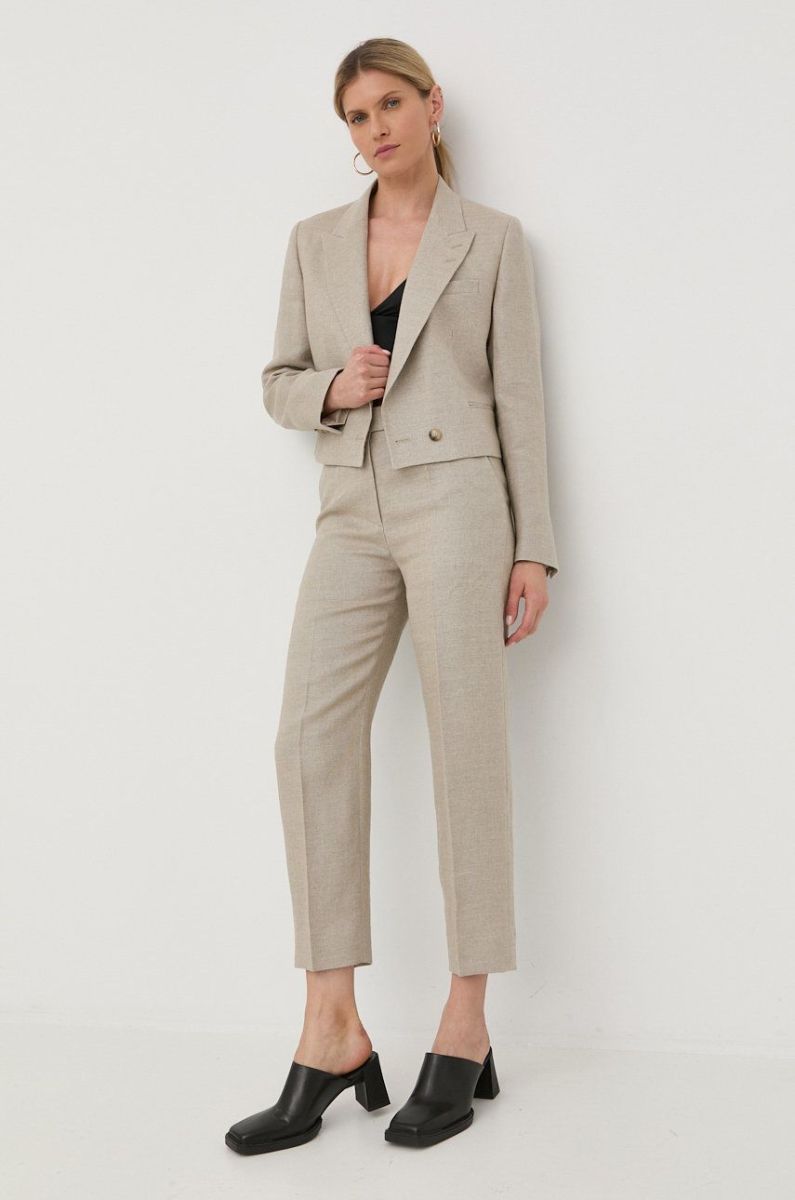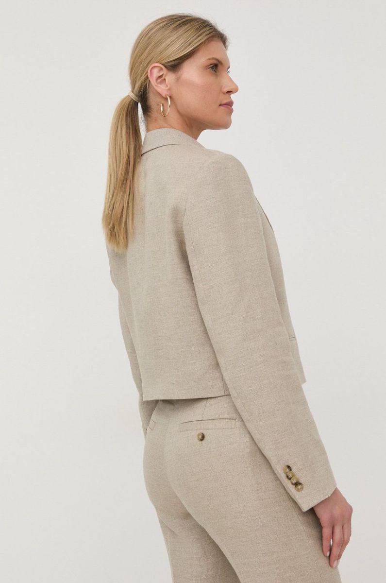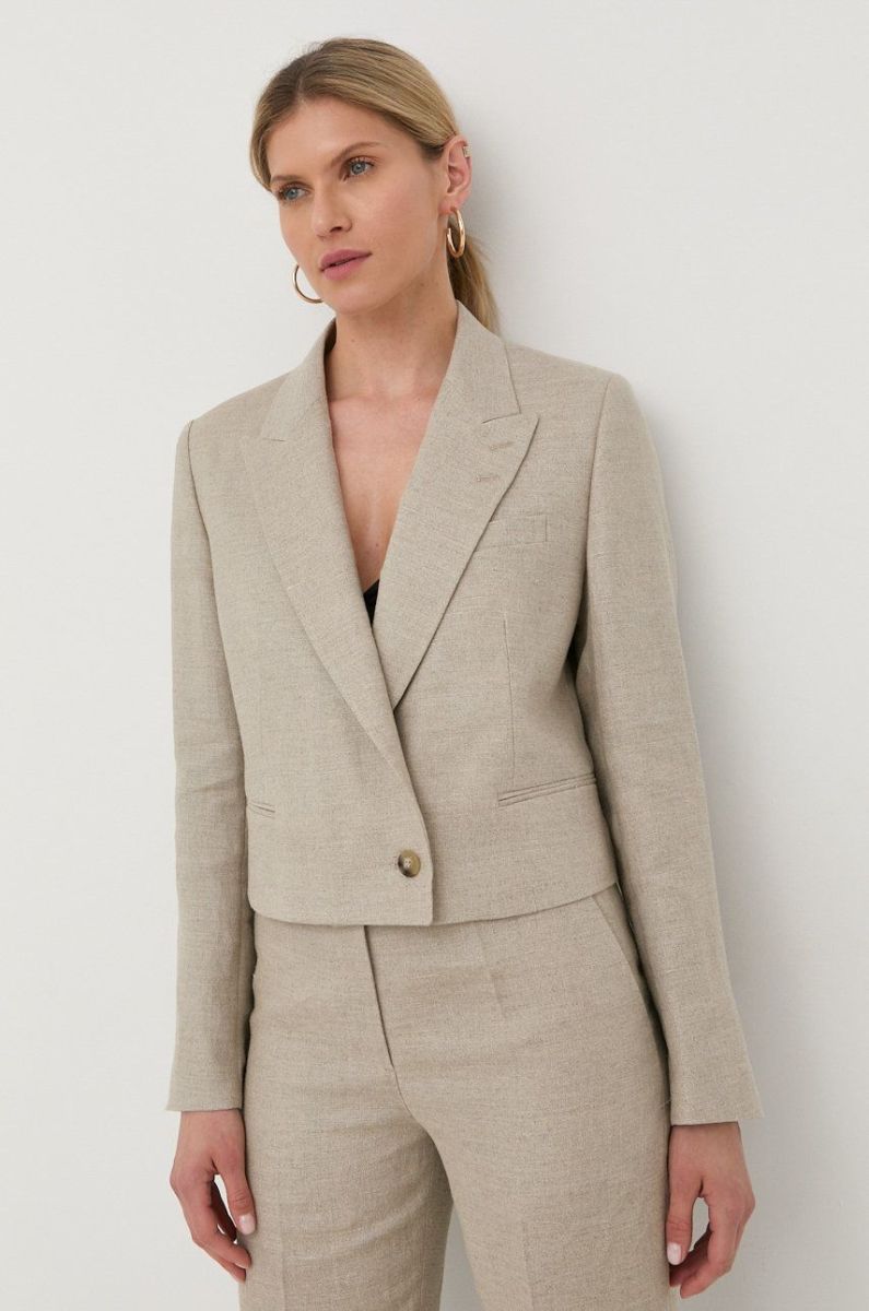 Льняний жакет Tiger Of Sweden колір бежевий двобортний однотонна