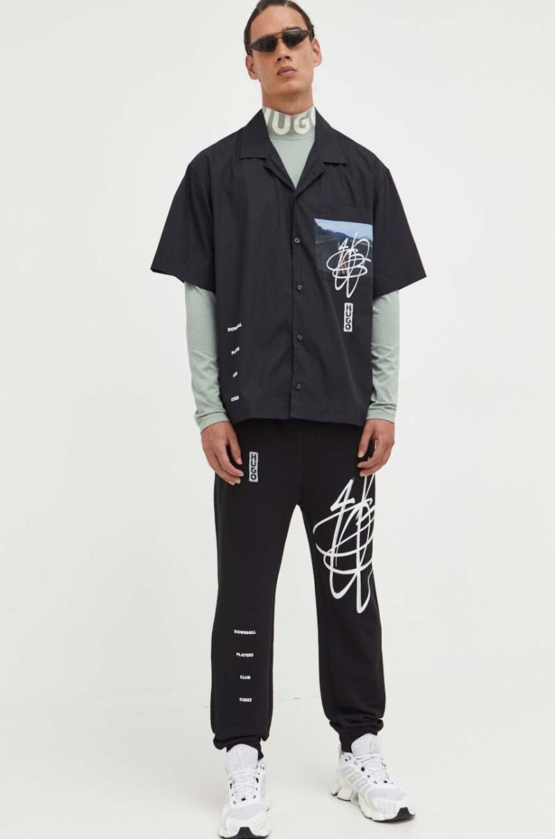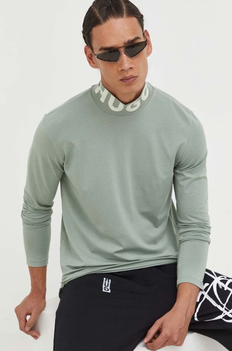 Лонгслів HUGO чоловічий колір зелений з принтом (3305893)