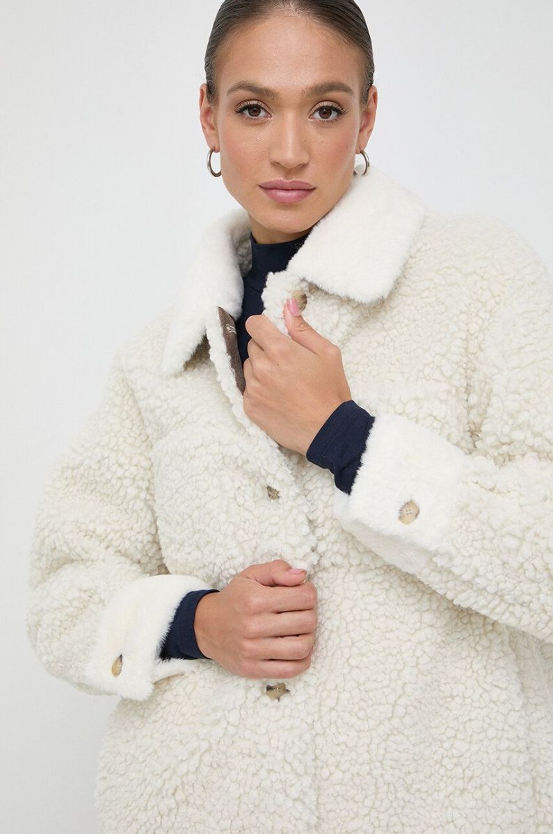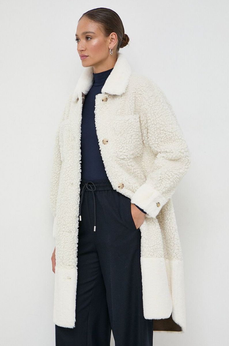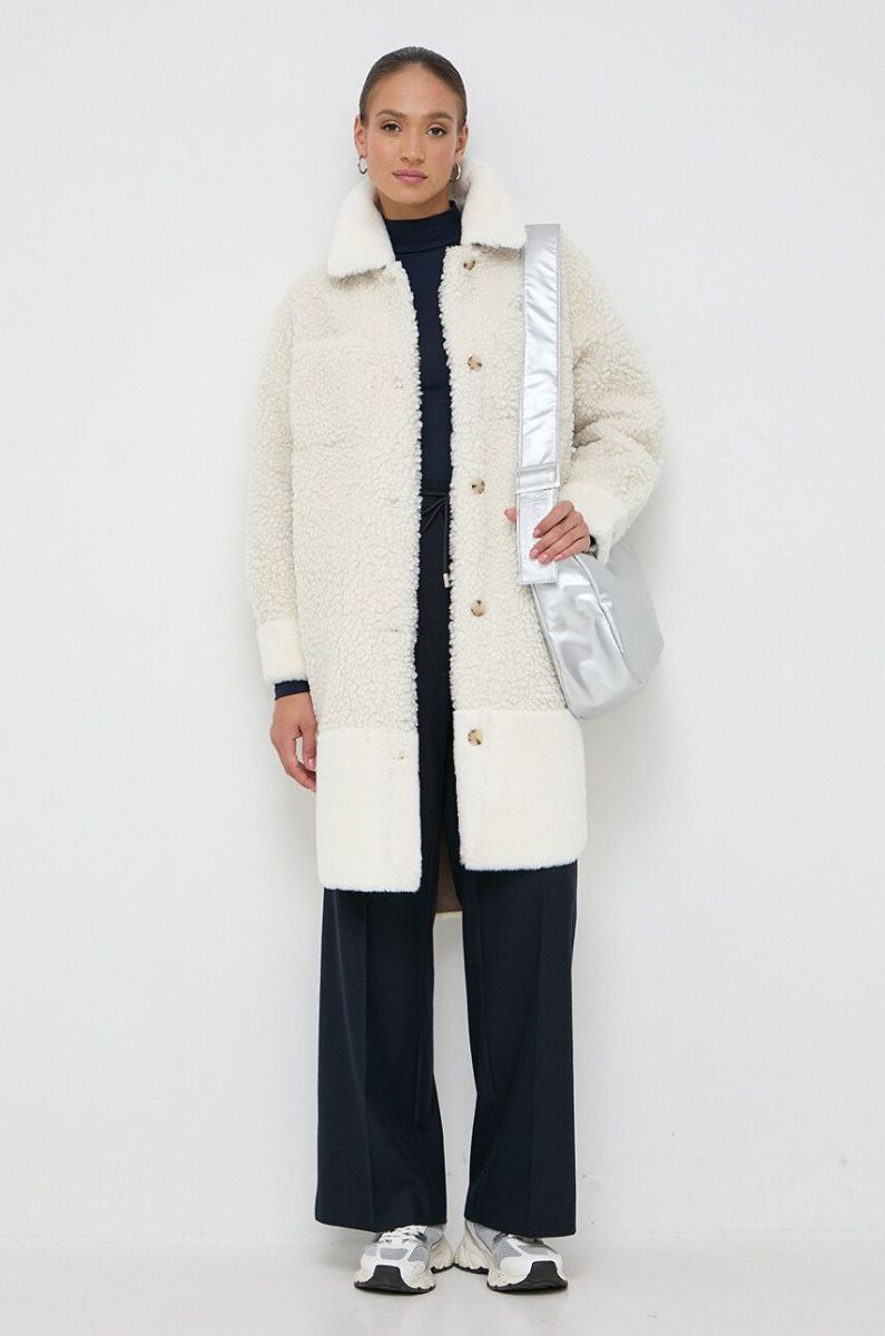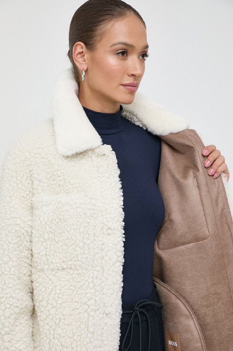 Пальто Boss Orange BOSS ORANGE жіноче колір бежевий перехідне (3589857)