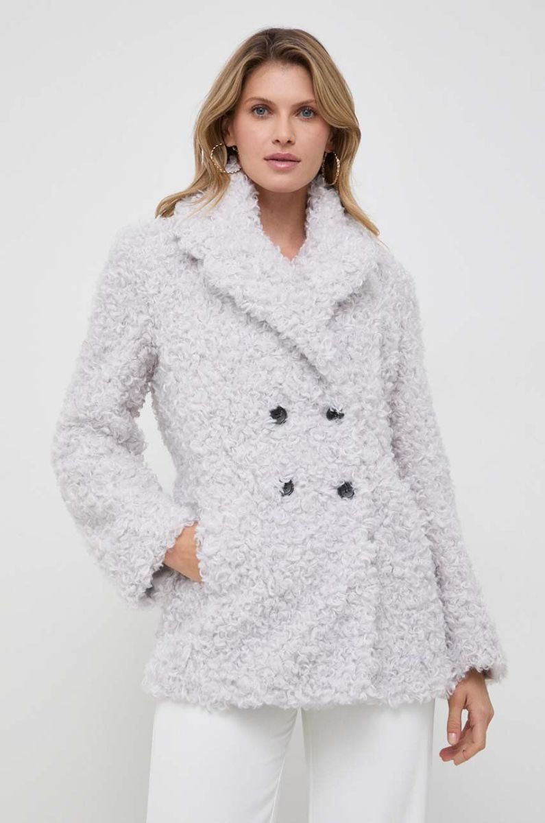 Пальто Patrizia Pepe жіночий колір сірий перехідний двобортний (3644863)